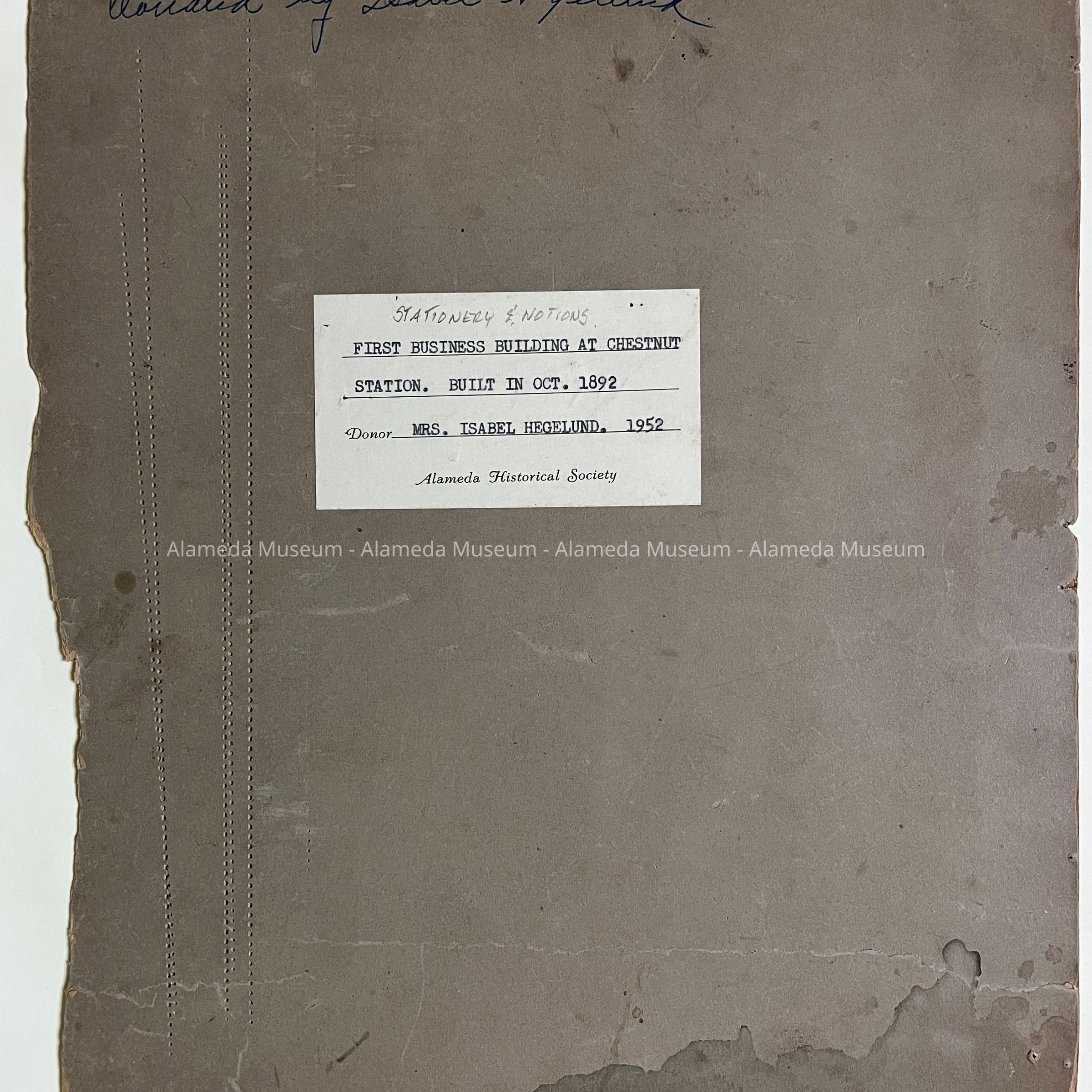 Description: Sepia-toned albumen print mounted on grey paperboard. Some cracking and slight tearing of outer edges of image. Description label and old catalog gum label are affixed to the margins of the mounting. Photographer: Cogan, Oakland, CA.