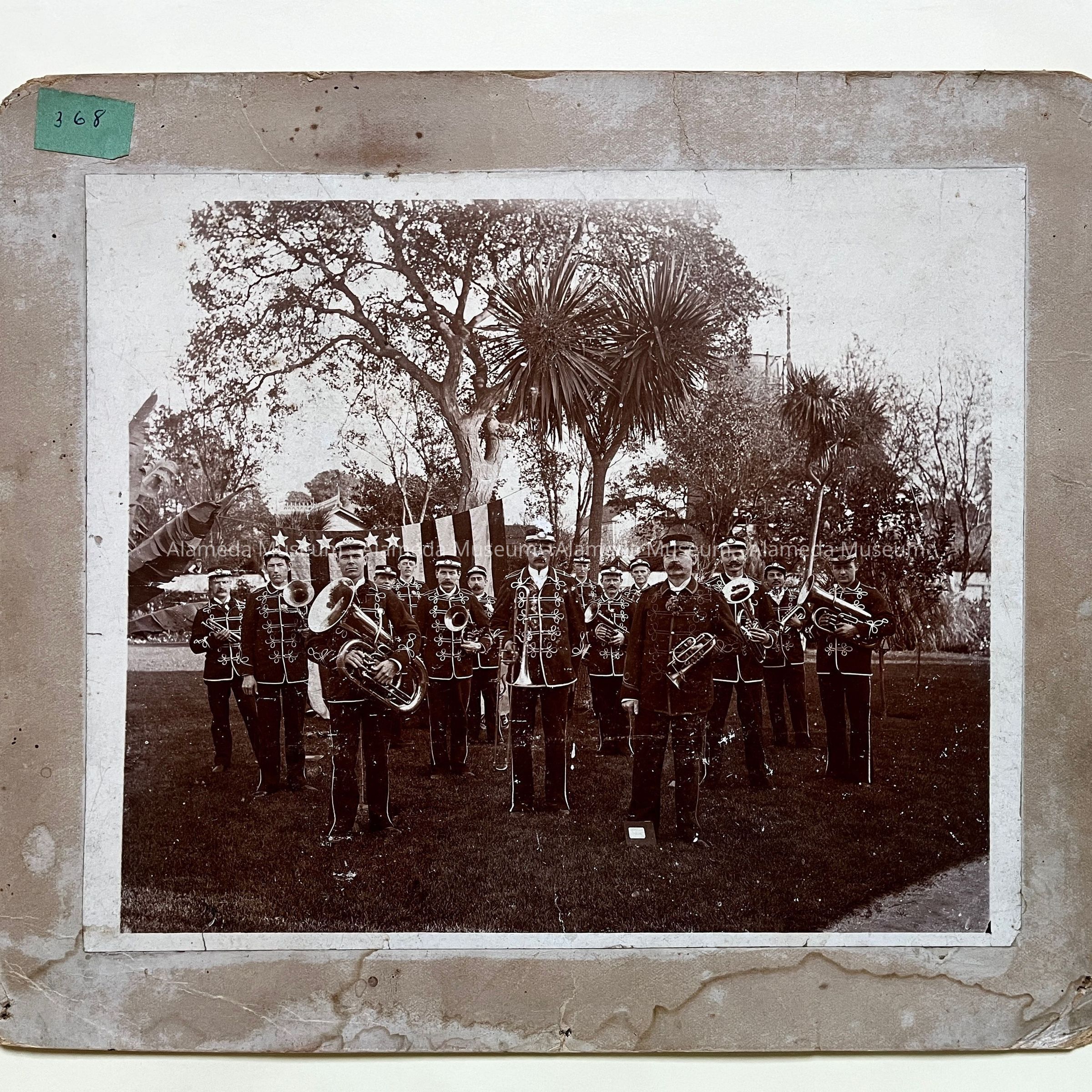 Photo uniformed members of the Encinal Band in a park, c. 1890Entry/Object ID