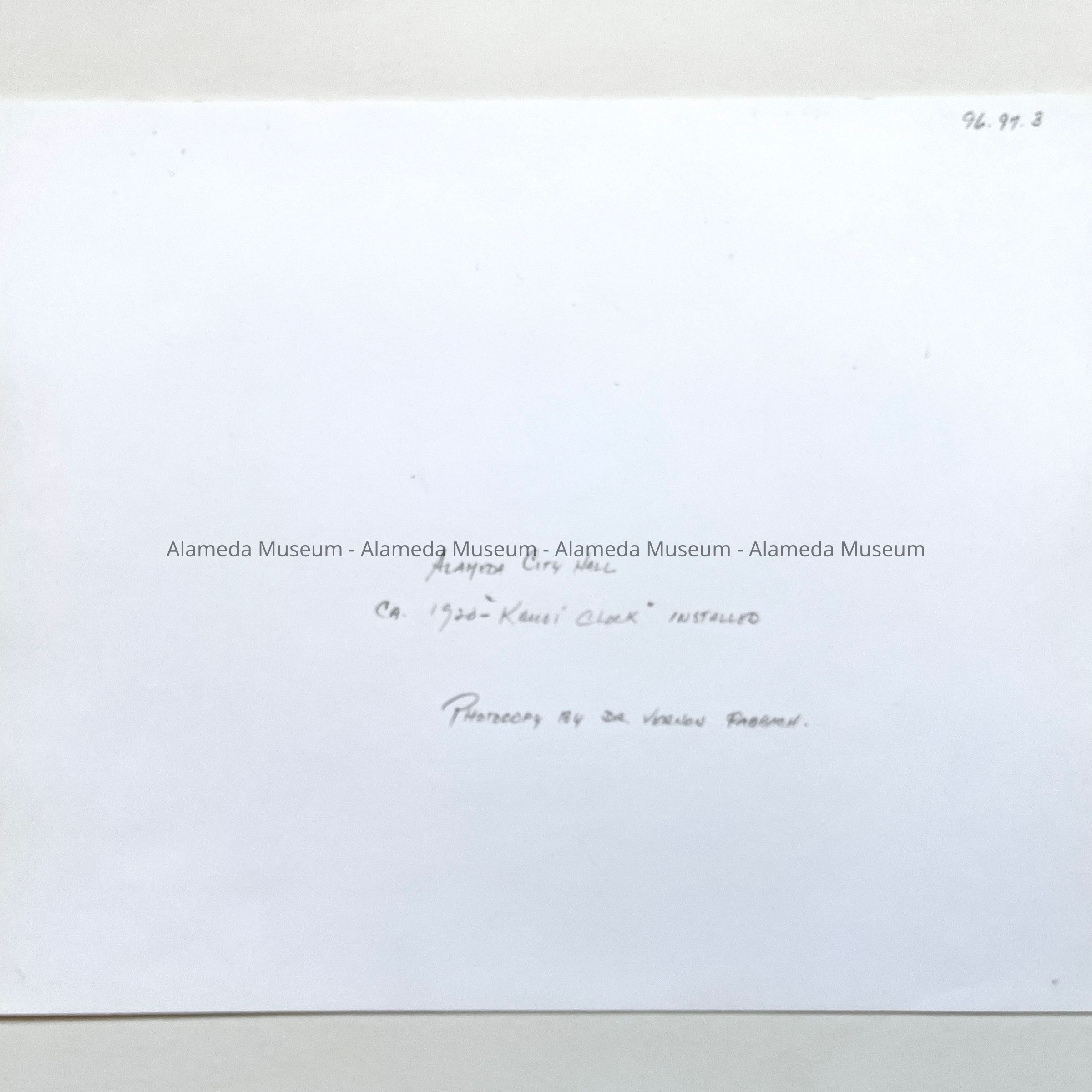 Photo view Alameda City Hall with the "Krusi" clocks, c. 1920Entry/Object ID