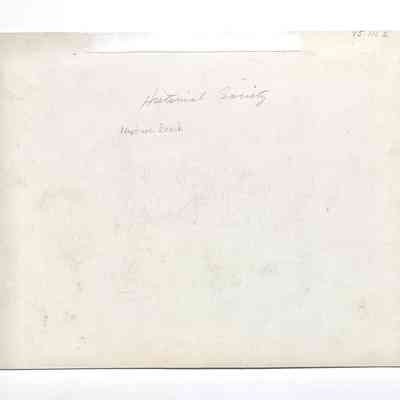 Description: Black/white glossy photograph. Unmounted. Photographer unknown. Descriptive typed label affixed to lower edge of image.