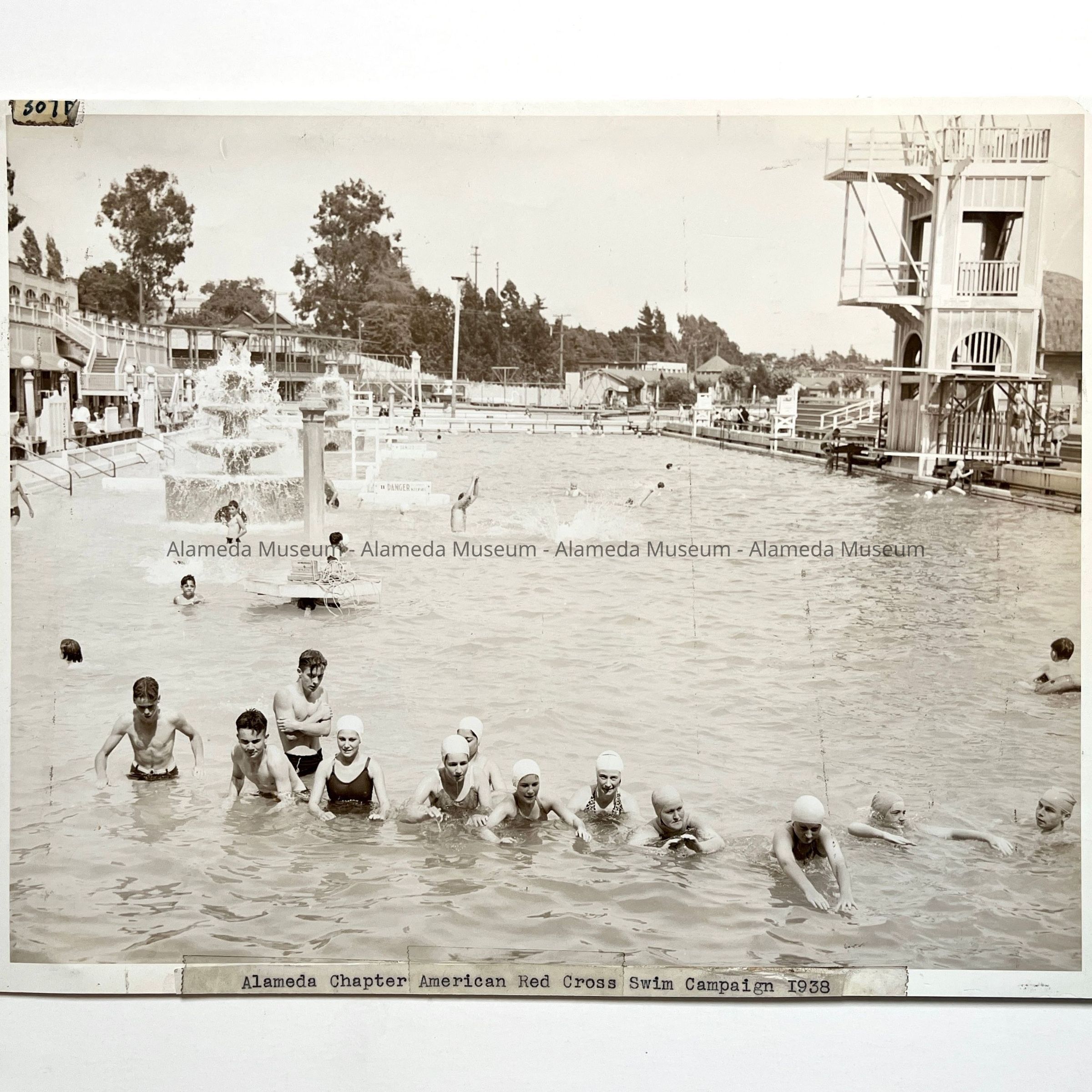 History of Object: Participants in the Alameda Chapter American Red Cross Swimming Campaign. East end of swimming pool shown in background.