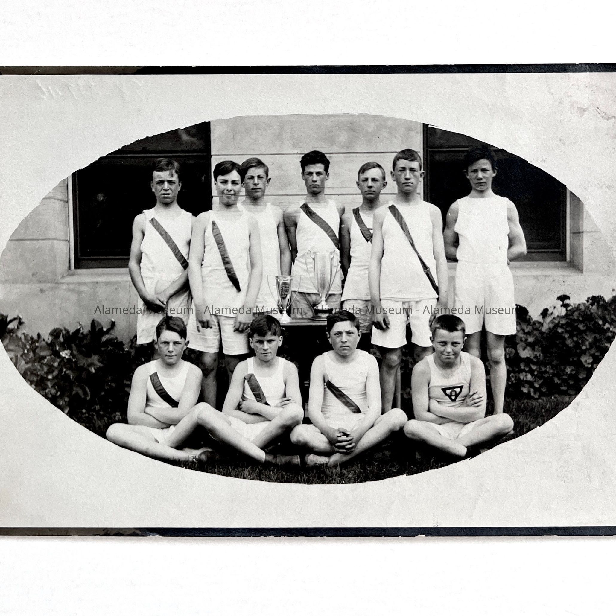 History of Object: Washington School track team posed with its trophies. No further identification is given.