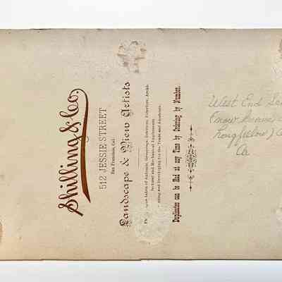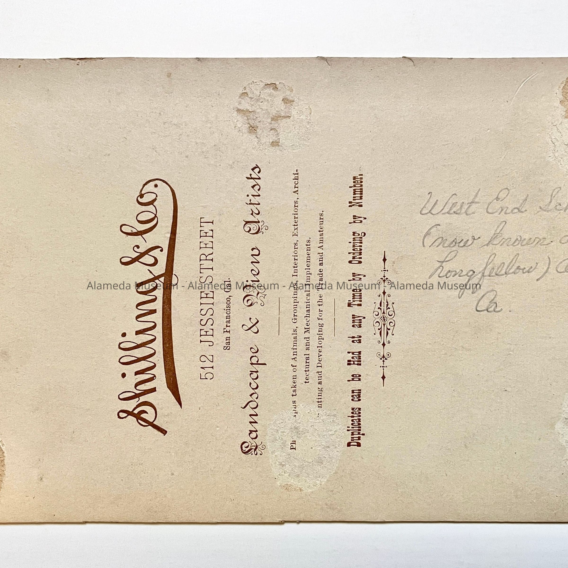Description: Lt. sepia-toned albumen print photo mounted on tan paperboard. Photographer: Shilling, S.F., (per imprinting in brown ink on verso). A date is written upon the image's bottom margin in blue ink. The top and bottom margins of the mounting have been cropped.