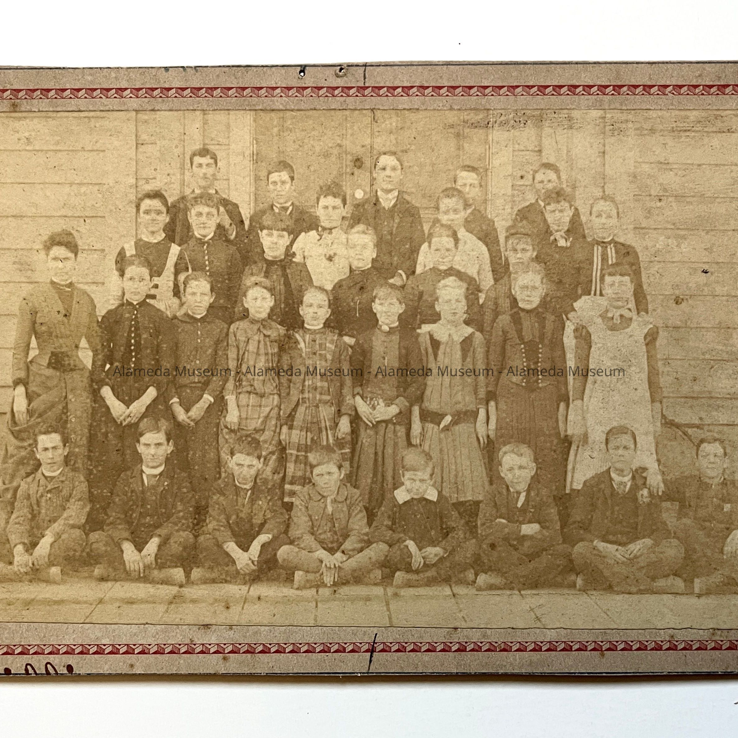 Photo West End School students and teacher posed at the school entrance, c. 1890Entry/Object ID