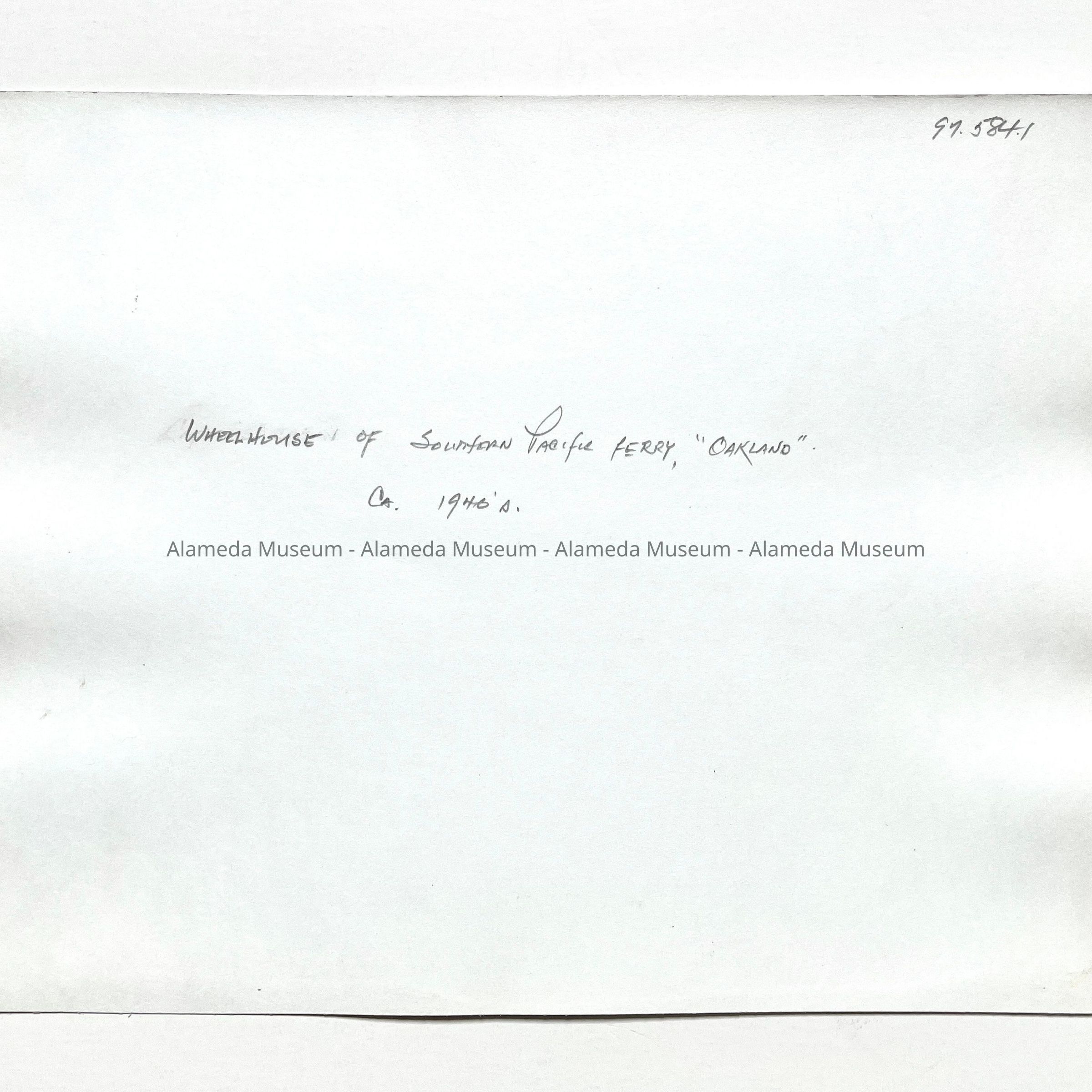 Photo wheelhouse of the S. P. ferry 'Oakland', c. 1940Entry/Object ID