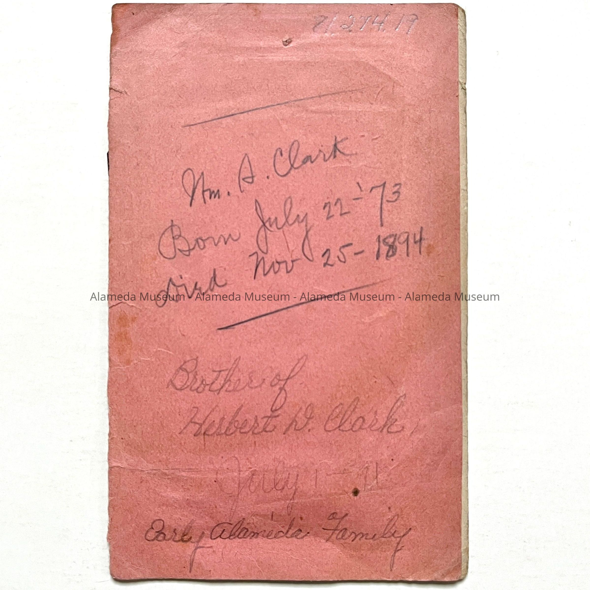 History of Object: William S. Clark, born July 22, 1873. Died November 25, 1894. Eldest son of R. Frank Clark and brother of Herbert D. Clark. Photograph dated July 1, 1891. He was an early resident of the city of Alameda,