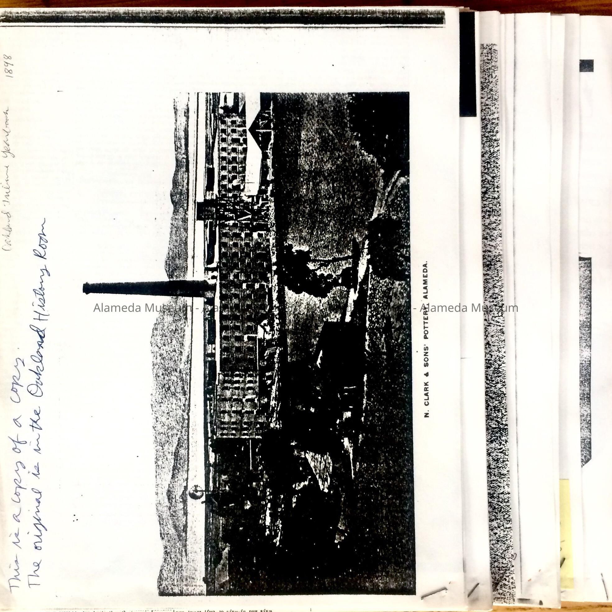 History: Photocopies of articles and ads relating to N. Clark and Sons Pottery Works, Alameda. Section G has a chronological history of the operation from 1864-1963.