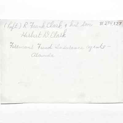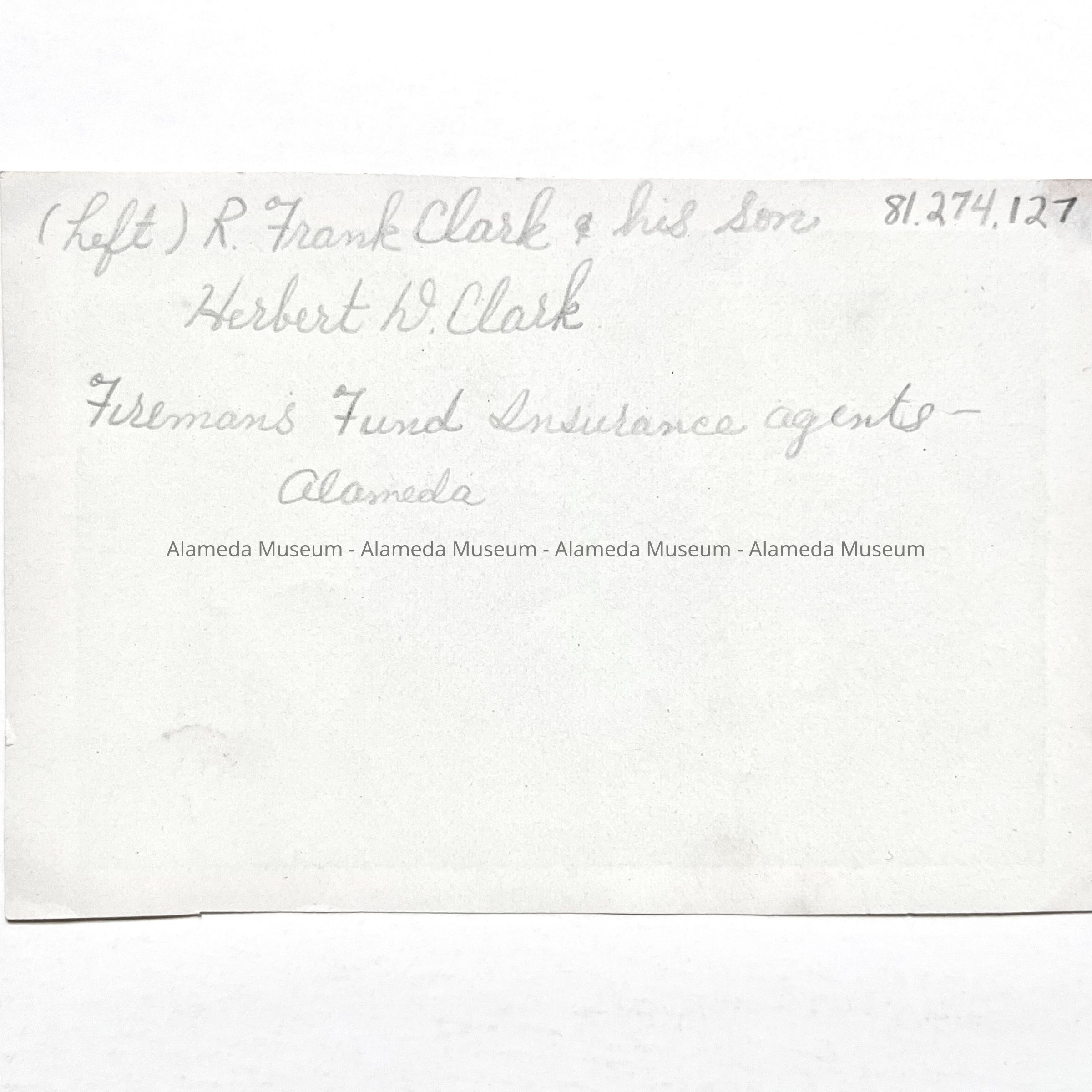 History of Object: Portraits of R. Frank Clark & his son Herbert D. Clark, Fireman's Fund Insurance agents, and pioneer residents of Alameda.