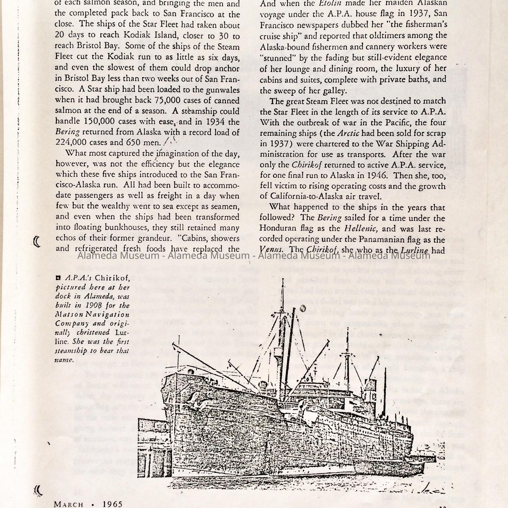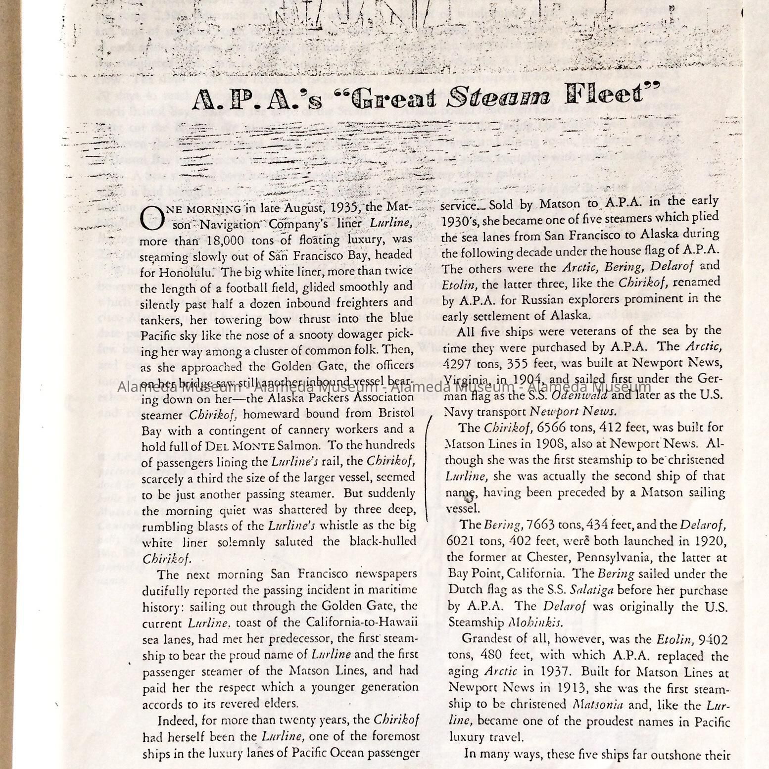 Photocopy of article 'Alaska Packers' Great Steam Fleet', 1965Entry/Object ID