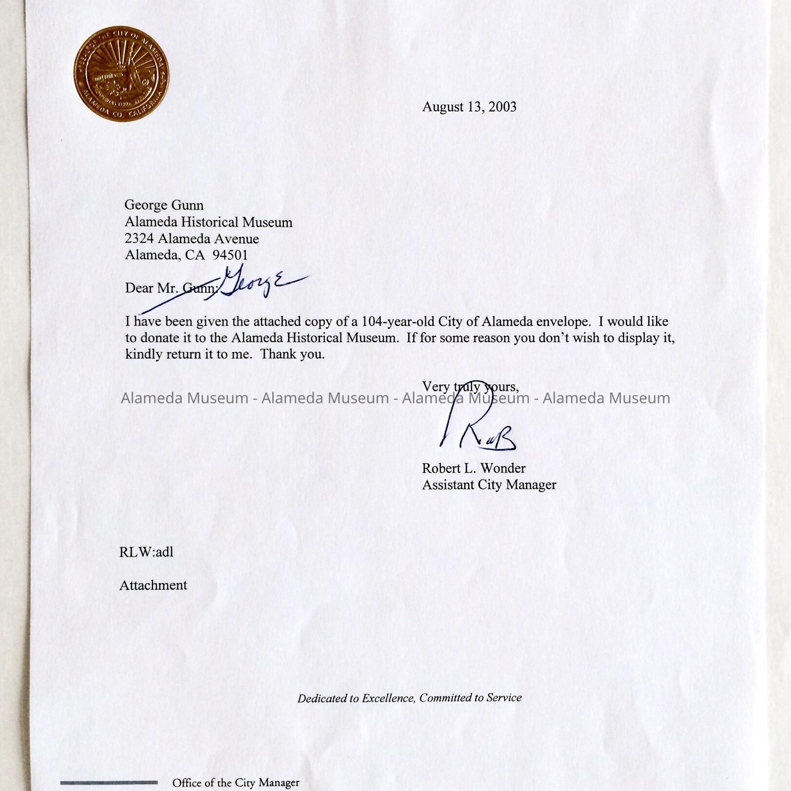 Photocopy of City of Alameda stationery envelope, 1899Entry/Object ID