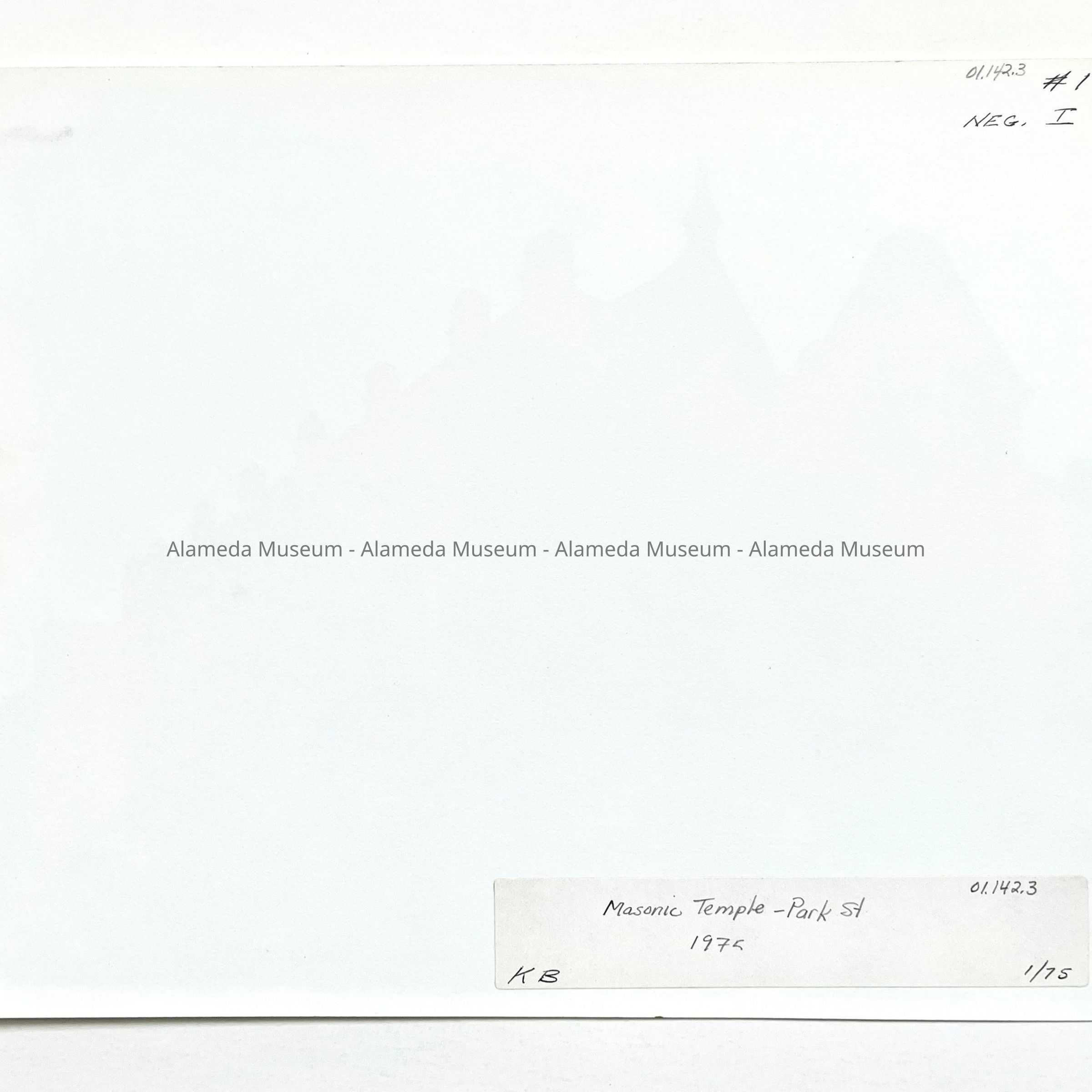 Photocopy depicting the east and north elevation of the original Masonic Temple on the southwest corner of Park Street and Alameda Avenue, erected in 1890.