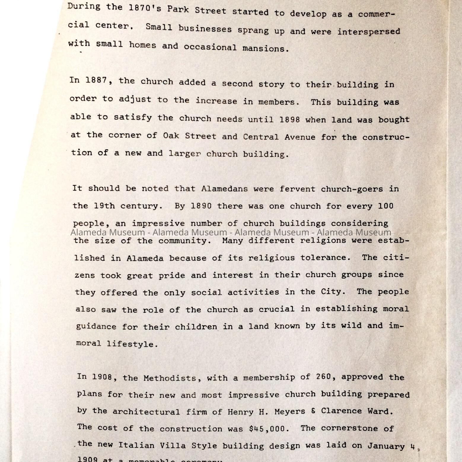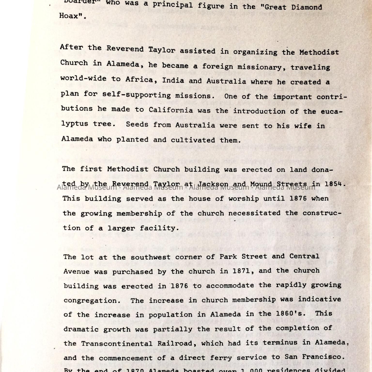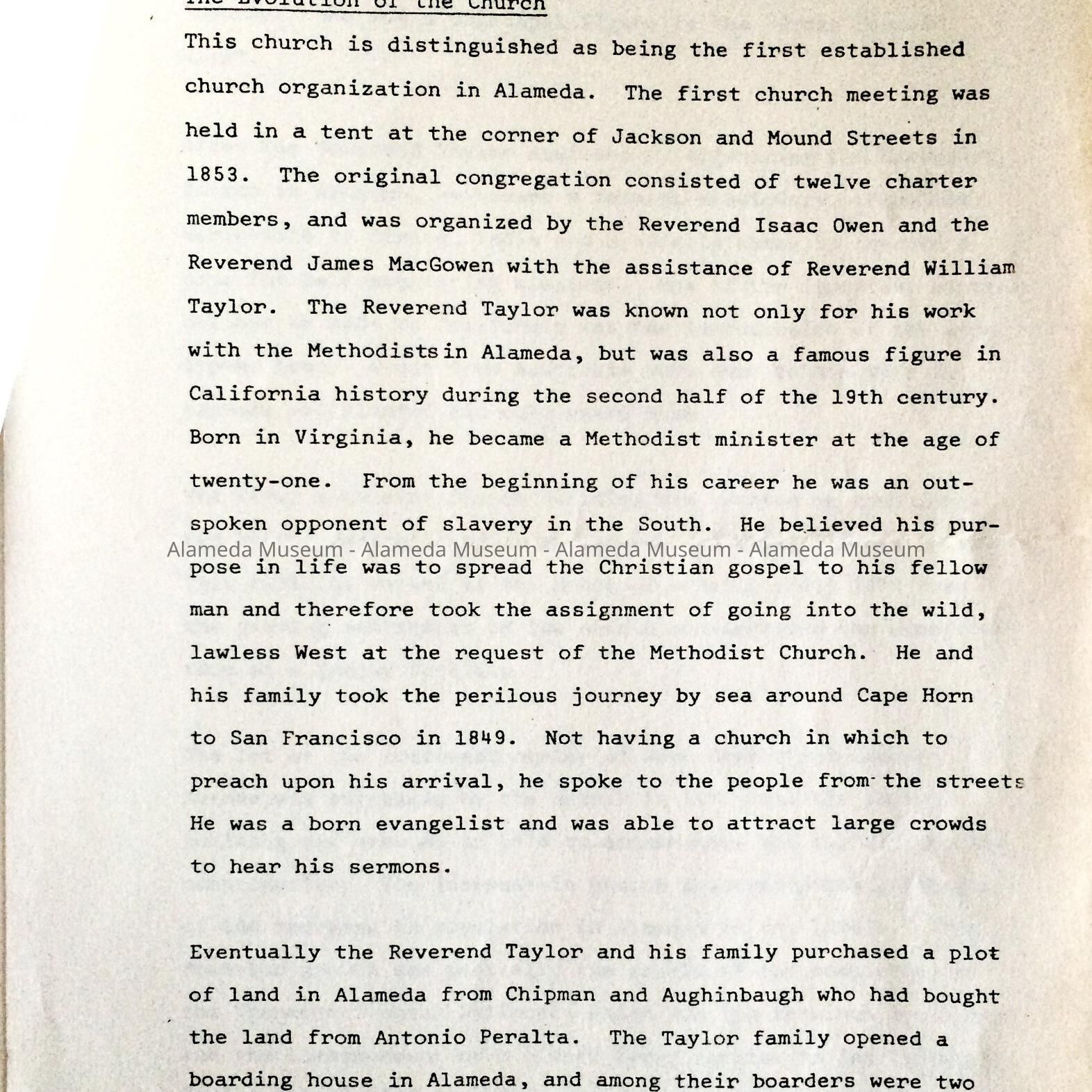 History: History of the Methodist church in Alameda, established 1853.
