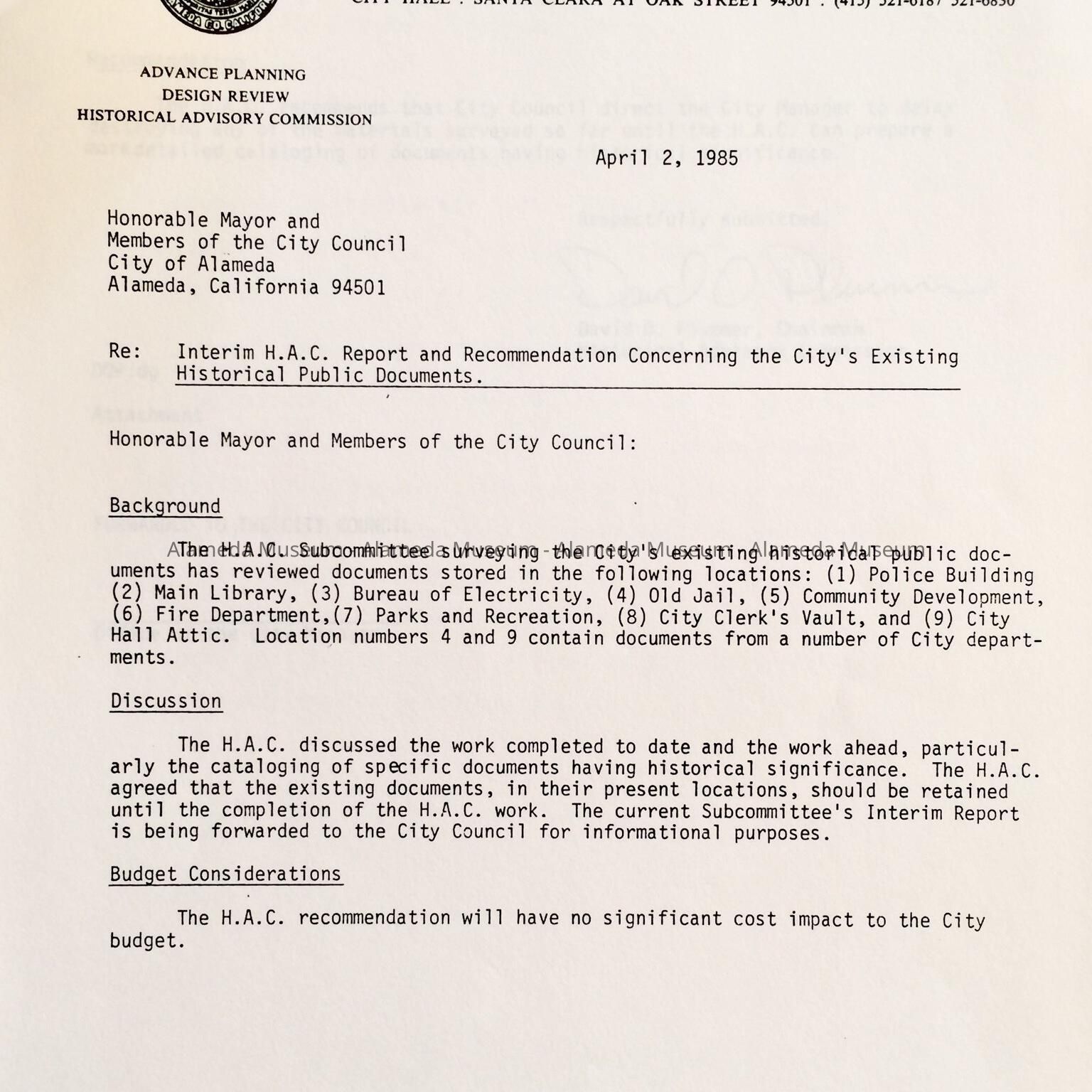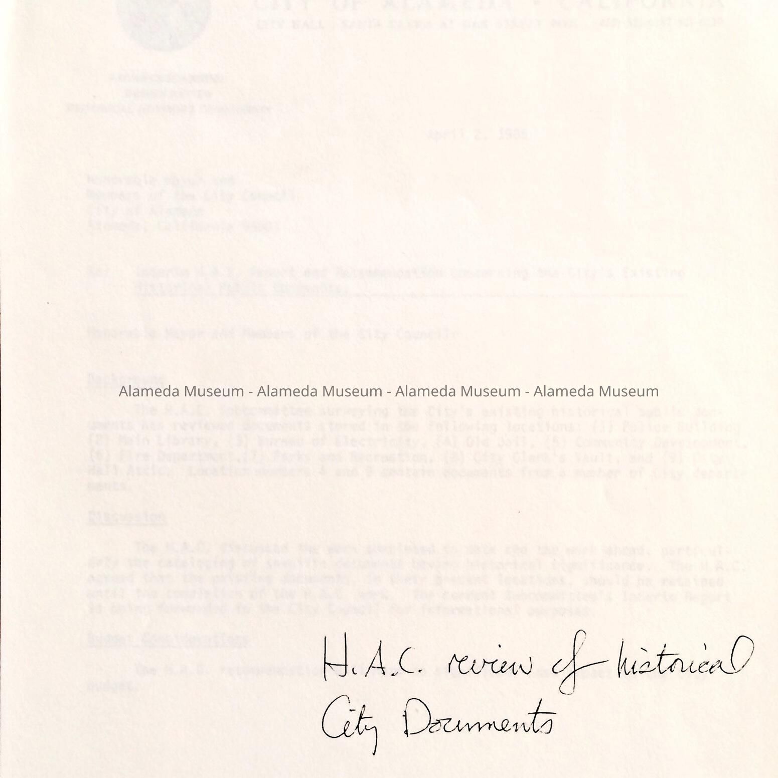 SUBJECT OR CATEGORY: CITY OF ALAMEDA