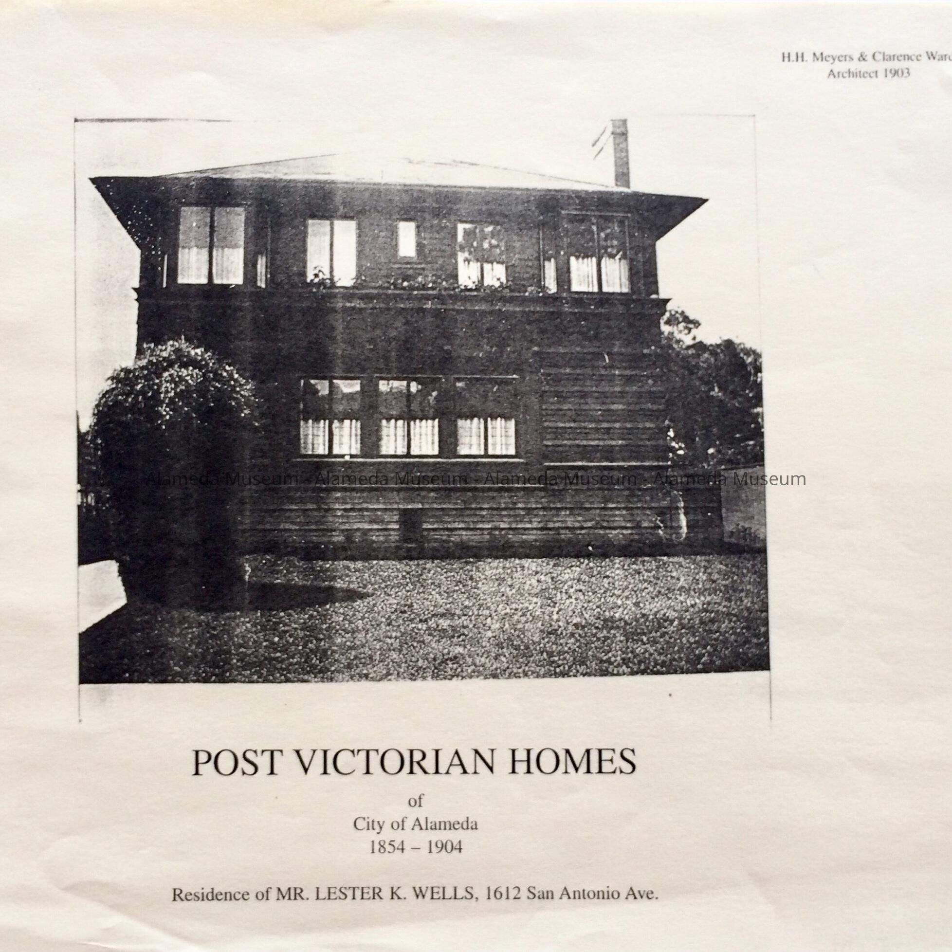 HISTORY OF OBJECT: A PHOTOCOPY OF AN EARLY BLACK-AND-WHITE PHOTOGRAPH DEPICTING 1612 SAN ANTONIO AVENUE, ALAMEDA; BUILT FOR LESTER K. WELLS AND DESIGNED BY HENRY H. MEYERS AND CLARENCE WARD, ARCHITECTS, IN 1903.