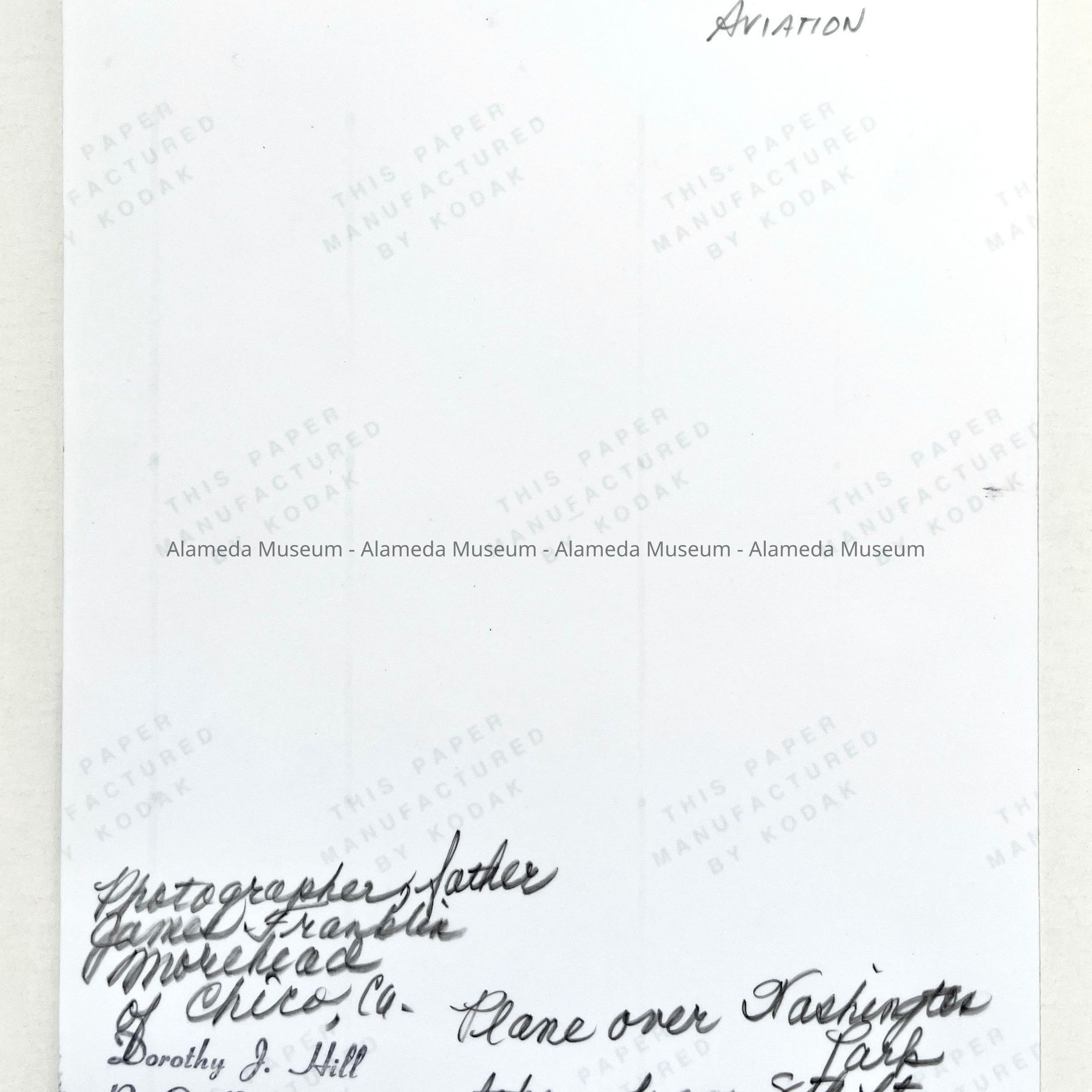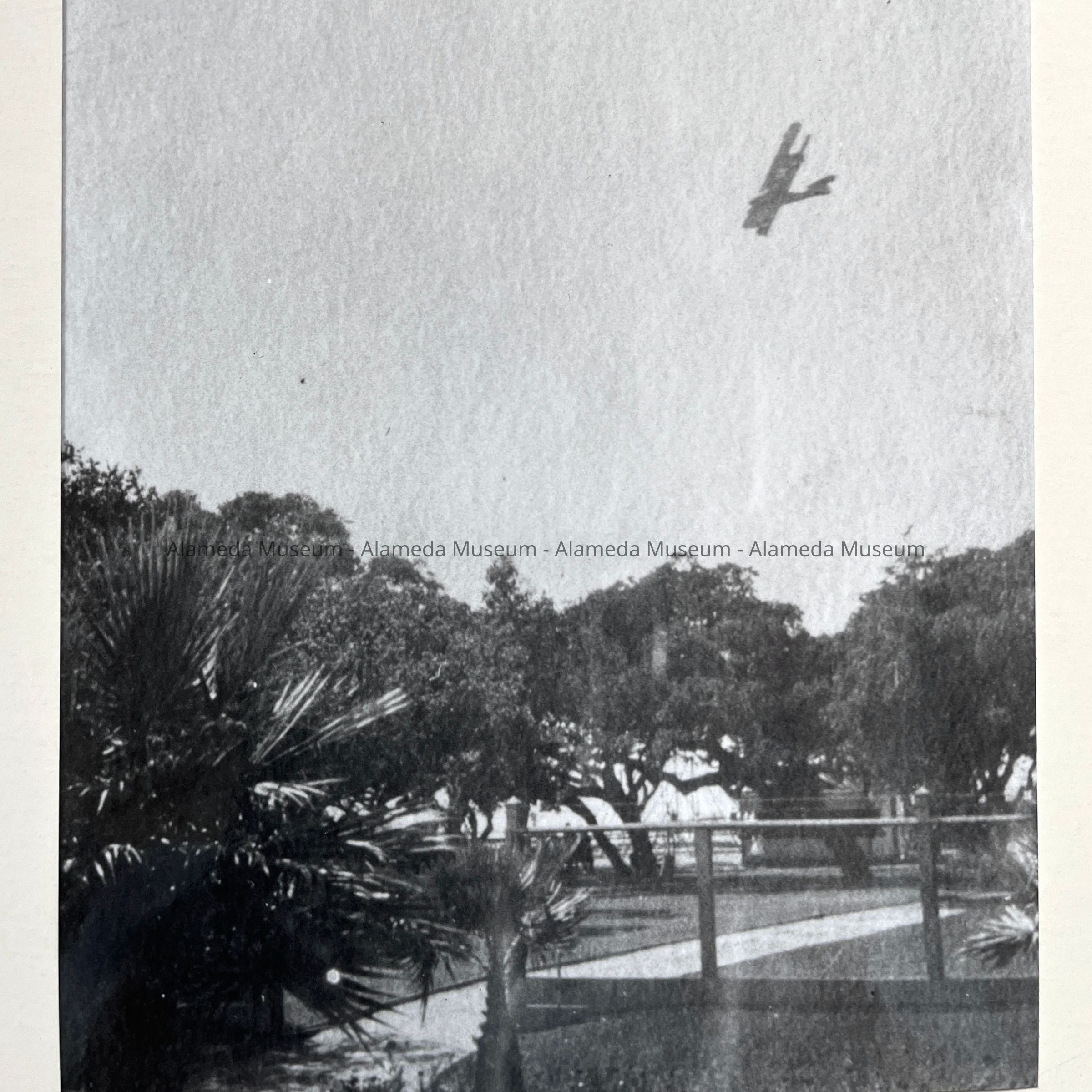 History of Object: Airplane photographed in the sky above Washington Park.