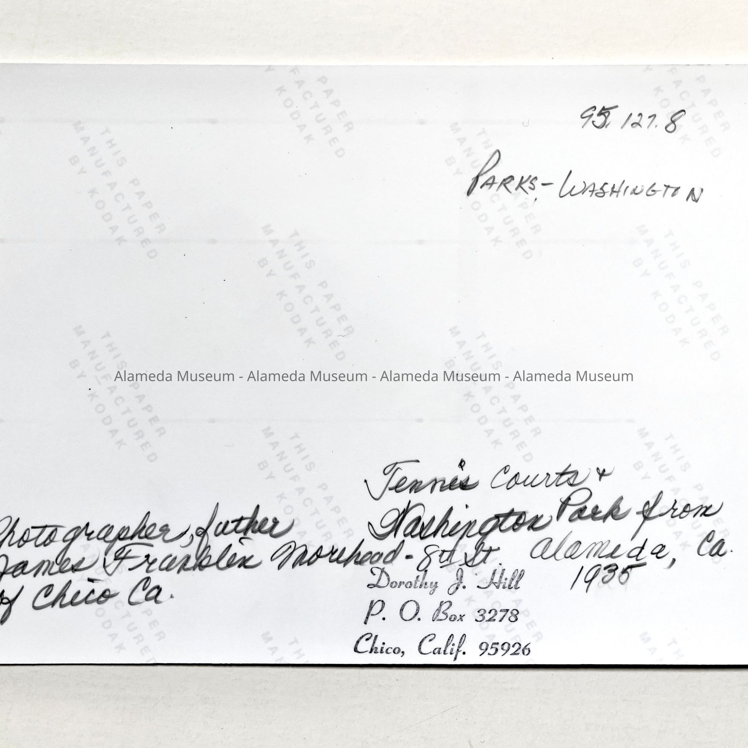 Photocopy of photo of view of Washington Park tennis courts, 1935Entry/Object ID