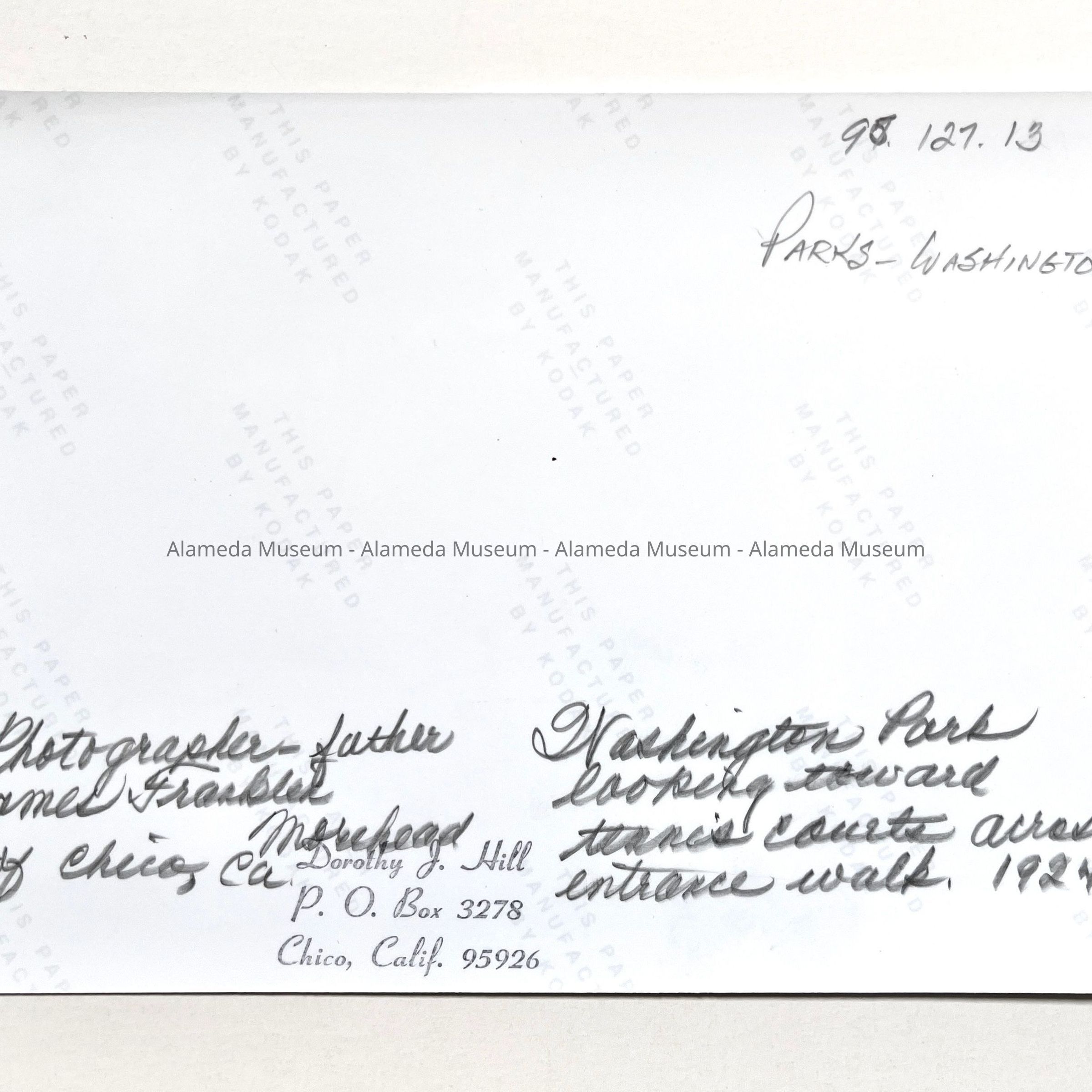 Photocopy of photo Washington Park toward entrance walk, 1924Entry/Object ID