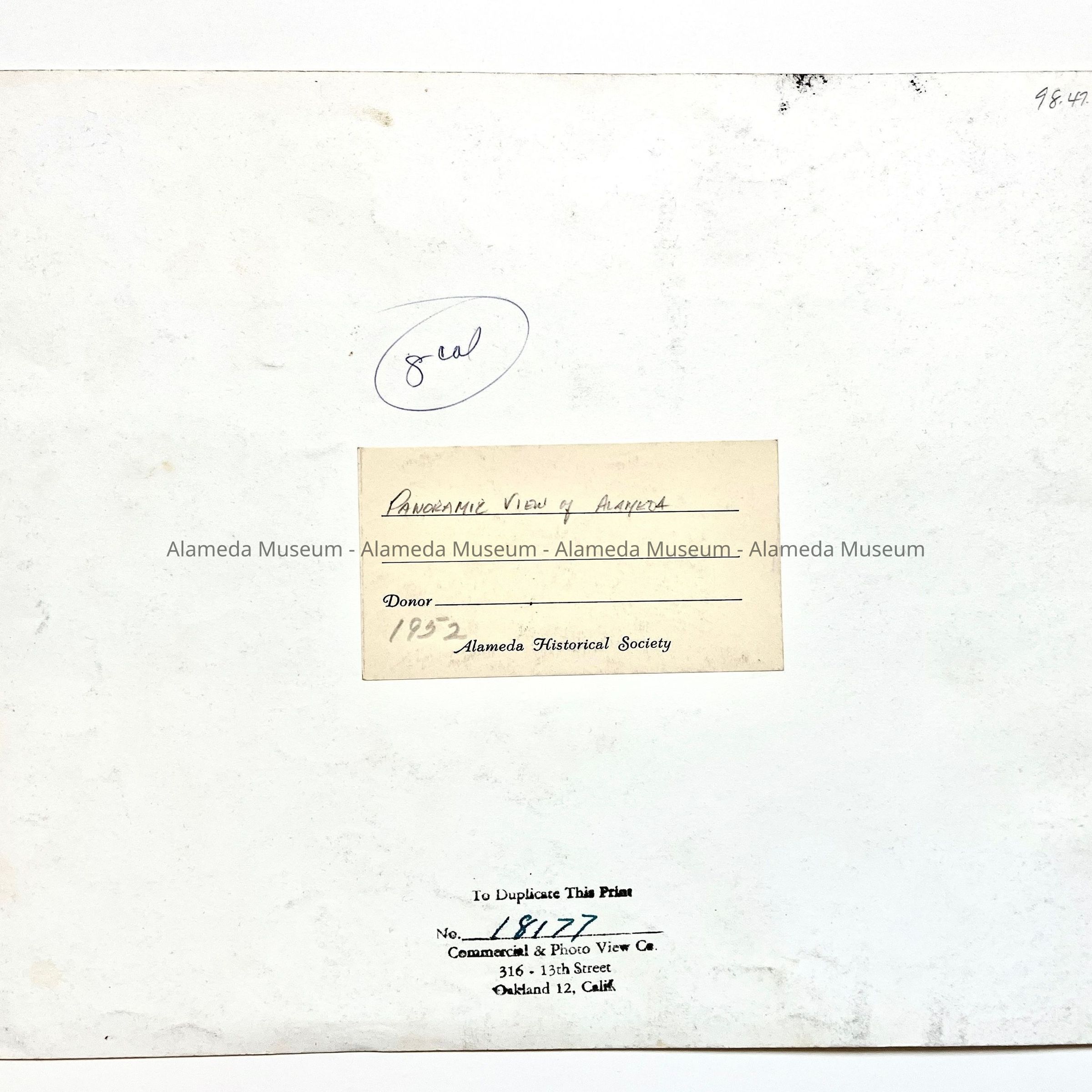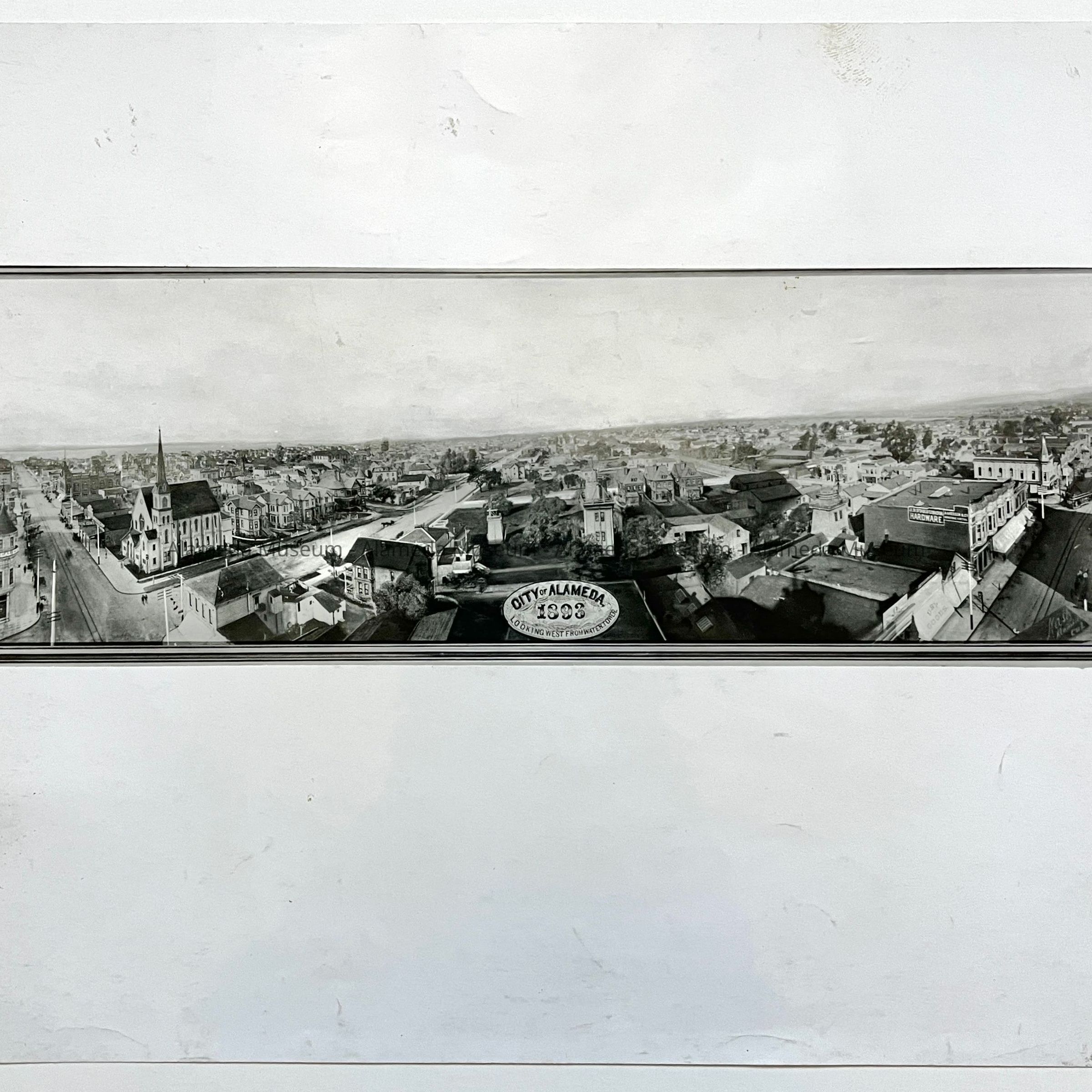 Description: Photocopy of the large panoramic view photo taken of Alameda in 1893, on view in the Museum (81.73.1).