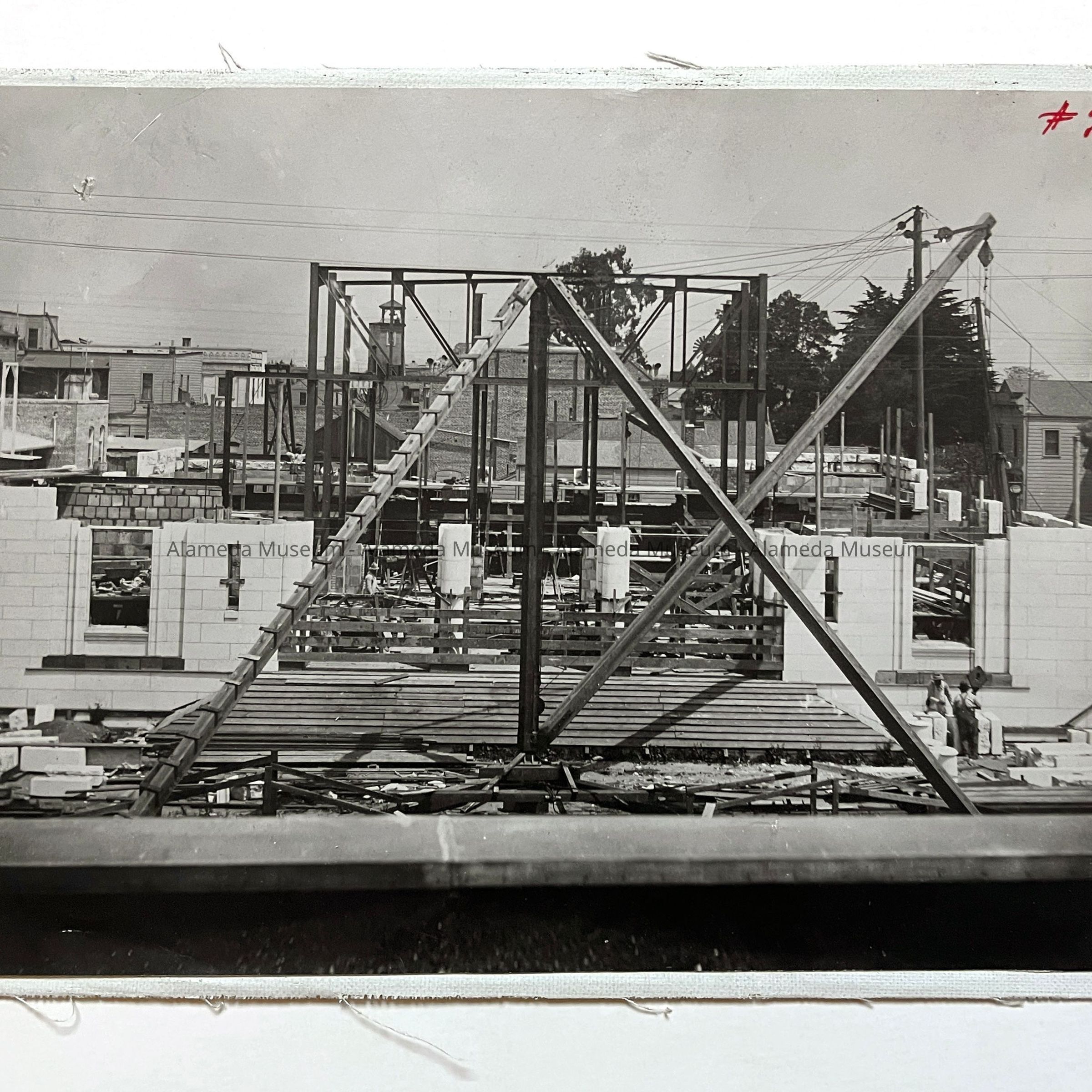 HISTORY OF OBJECT: THE PHOTOGRAPH IS FROM A SERIES TAKEN OF THE ERECTION OF THE ALAMEDA POST OFFICE.