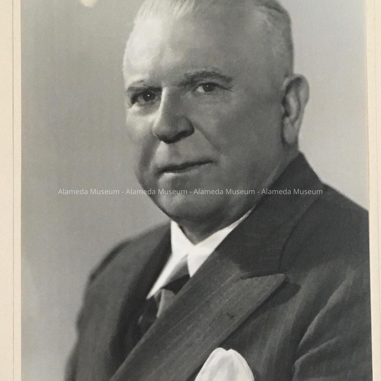 A PORTRAIT OF THE LATE FRED J CROLL (1881-1949), FOUNDER AND FIRST PRESIDENT OF THE ALAMEDA HISTORICAL SOCIETY. MR CROLL SERVED FOR MANY YEARS AS ASSESSOR FOR THE CITY OF ALAMEDA, AND WAS A MEMBER OF A PIONEER ALAMEDA FAMILY. THE PORTRAIT WAS GIVEN TO THE ALAMEDA HISTORICAL SOCIETY IN 1951 BY THE LATE WERNER CROLL (BROTHER OF FRED).