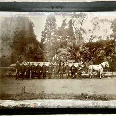 Photograph of Citizen Hook and Ladder Truck Number 1, Truck, horses, and 16 members, c. 1900Entry/Object ID