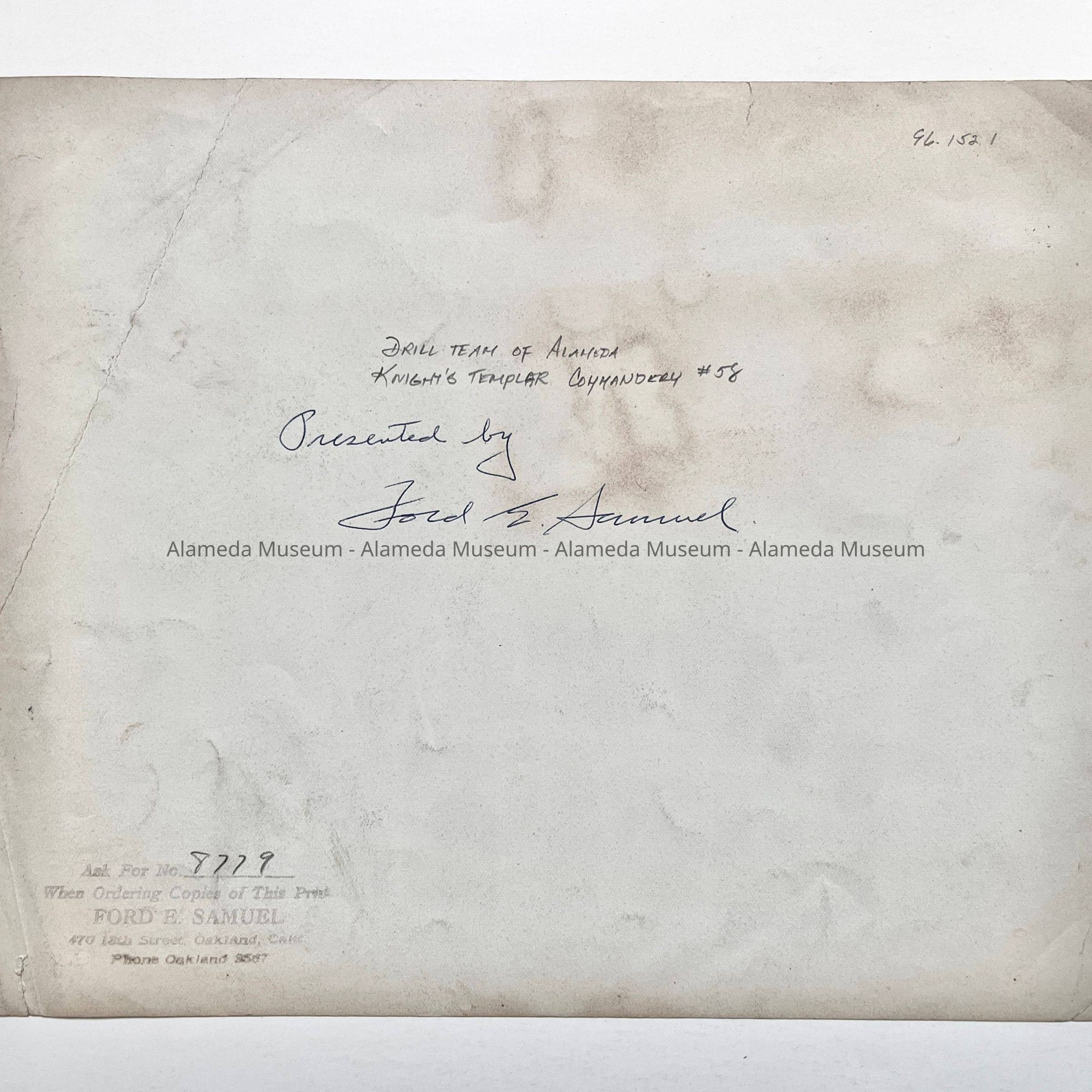 Description: Glossy black/white photo, unmounted.. Photorapher: Ford E. Samuel, Alameda.