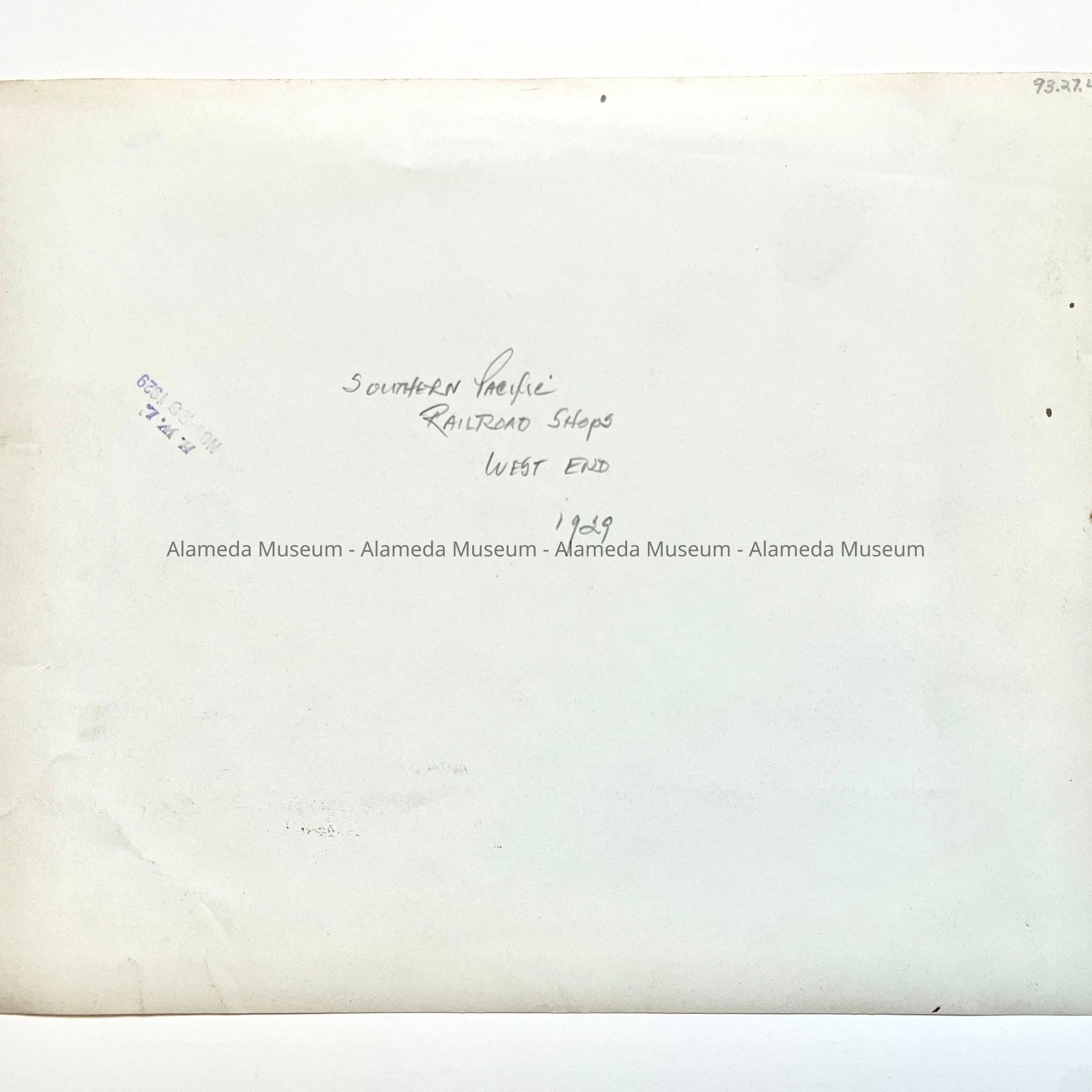 History of Object: photographs taken by Southern Pacific Railroad Company at their West Alameda shops in the 1920's.