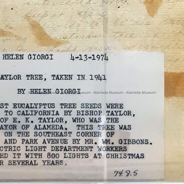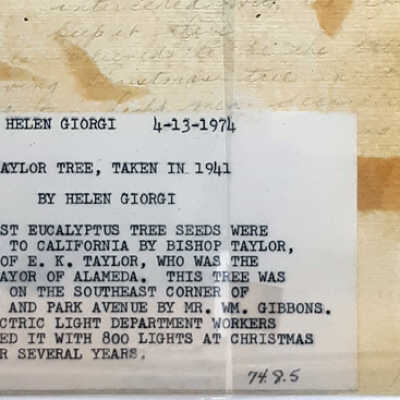 HISTORY OF OBJECT: PHOTOGRAPH TAKEN OF THE TAYLOR TREE, IN 1941, BY HELEN GIORGI.