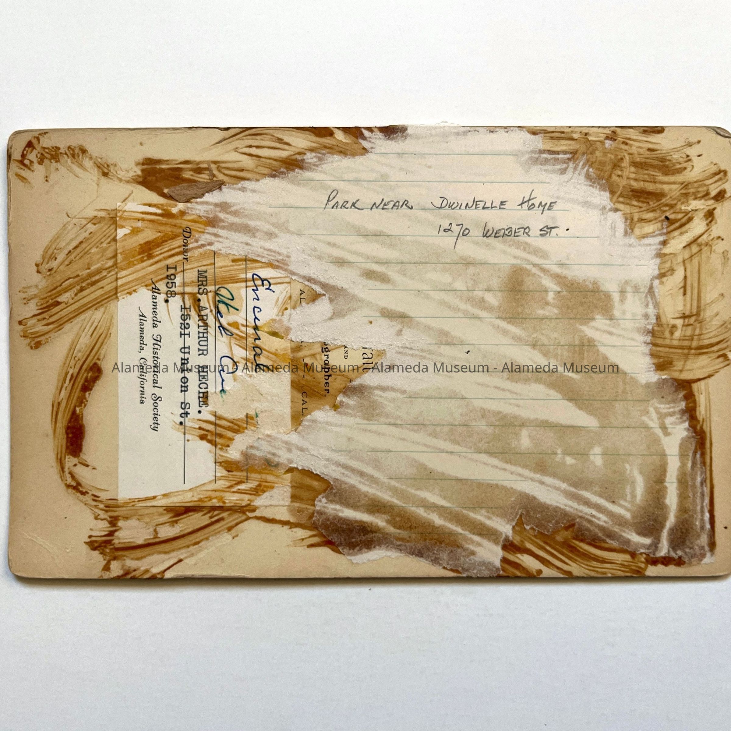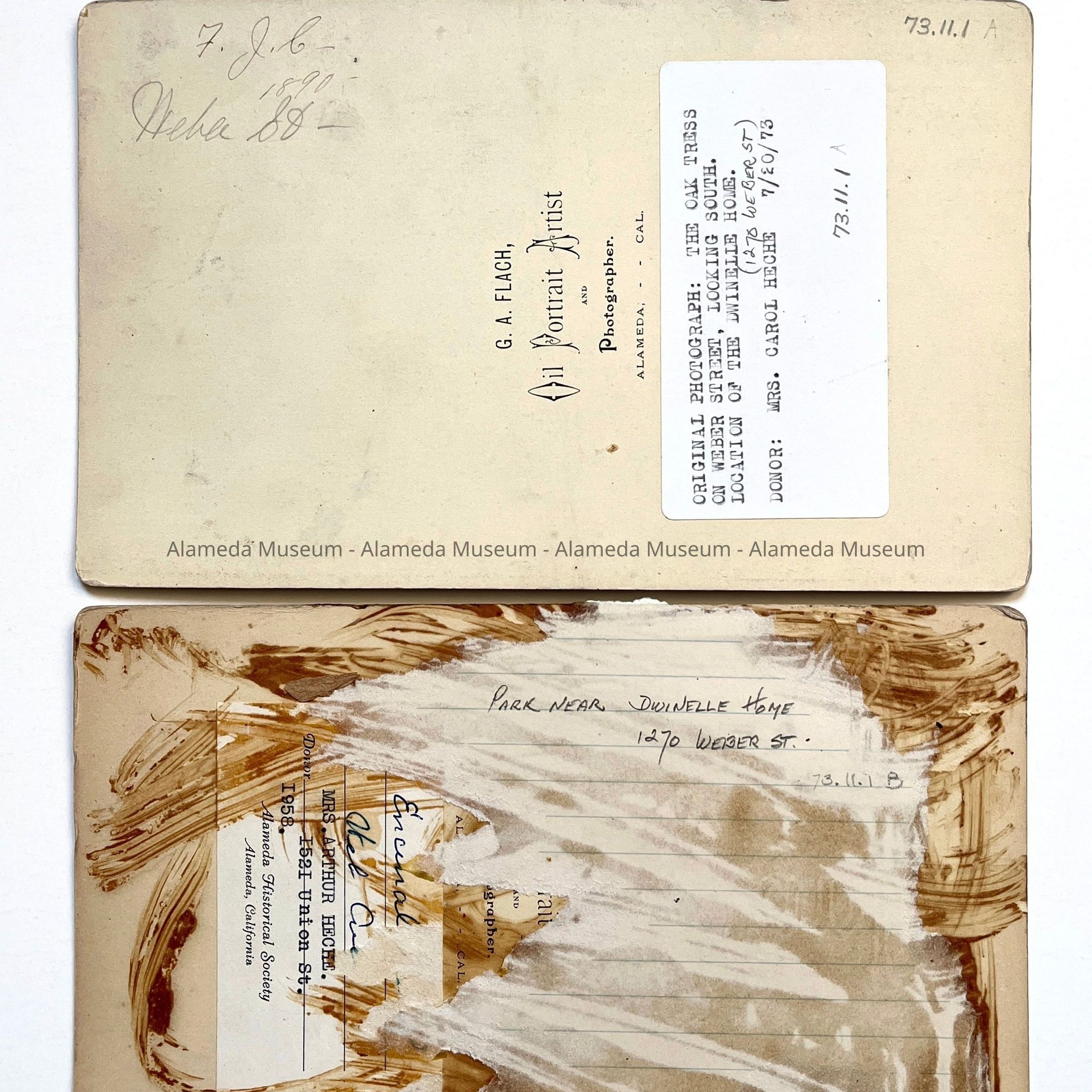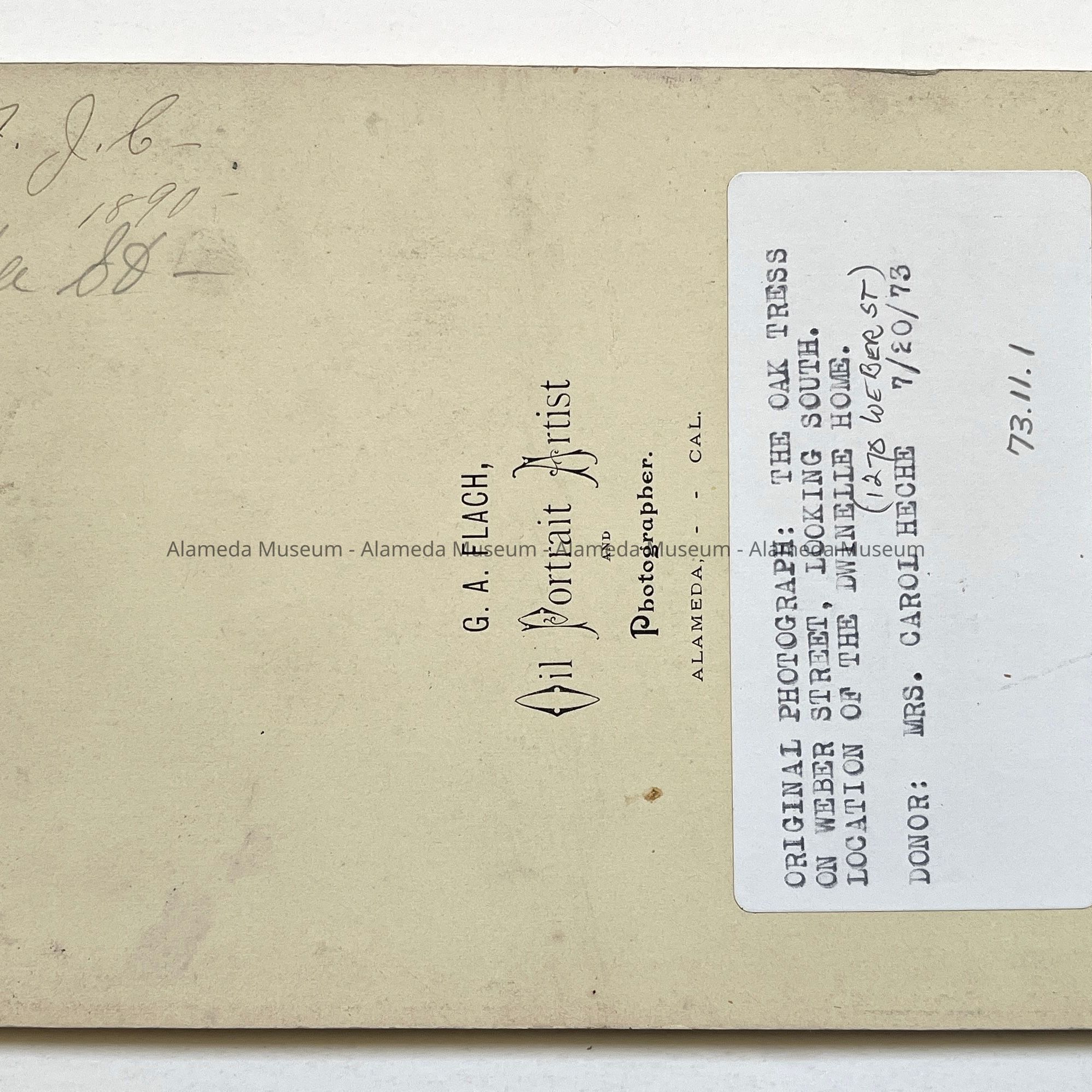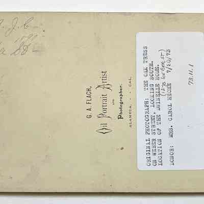ON THE REVERSE SIDE OF THE PHOTOGRAPH IT STATES, G. A. FLACH, OIL PORTRAIT ARTIST AND PHOTOGRAPHER, ALAMEDA, CALIF.