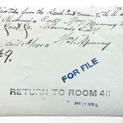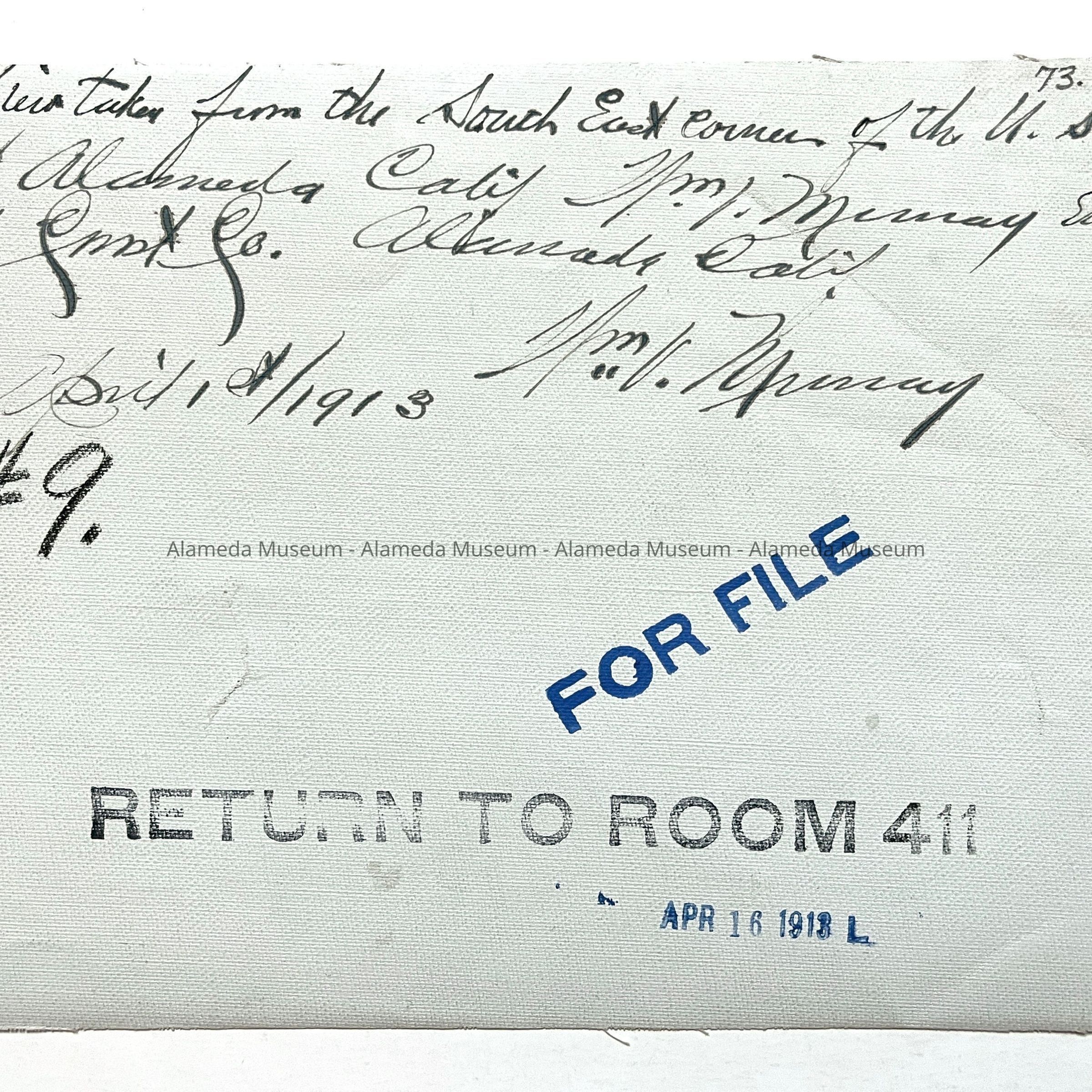 VIEW TAKEN FROM THE SOUTH EAST CORNER OF THE U. S. POST OFFICE, ALAMEDA, CALIF. Wm. V. MURRAY ENGINEERING AND CONTRACTING COMPANY, APRIL 1, 1913