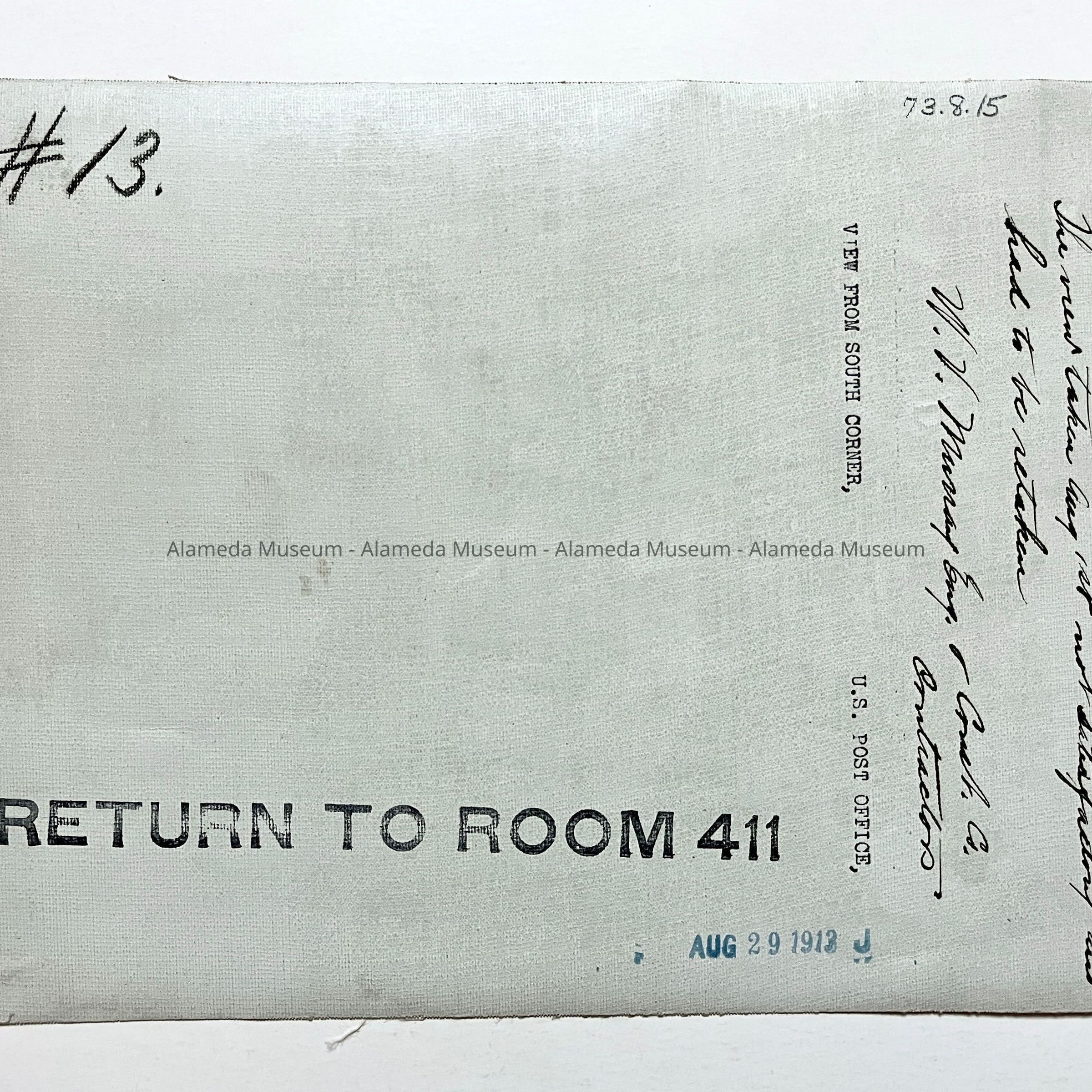 Photograph view from South corner Alameda Post office during construction, August 3, 1913Entry/Object ID