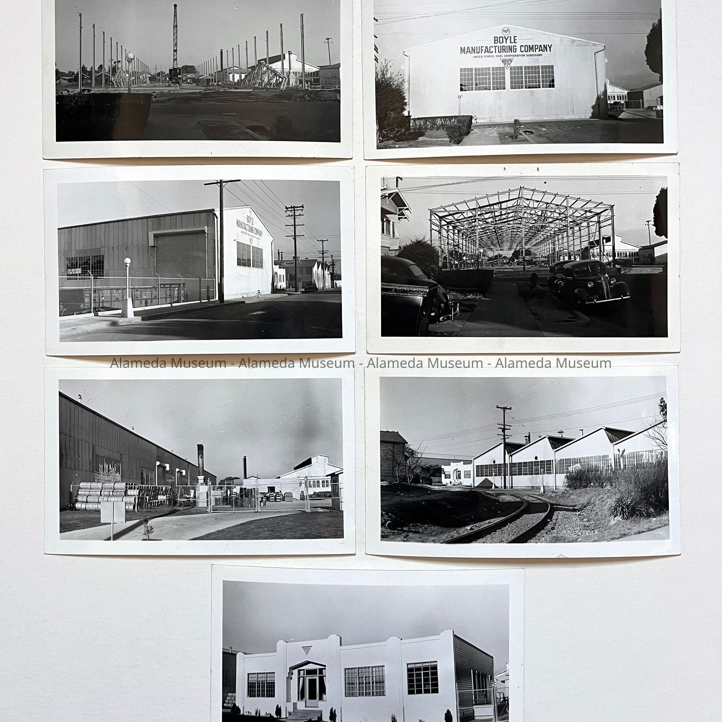 SERIES OF PHOTOGRAPHS DEPICTING RAILROAD TRACKS, YARD, CONSTRUCTION OF WAREHOUSE, ETC. BOYLE MANUFACTURING COMPANY, U S STEEL CORPORATION SUBSIDIARY, 1849 OAK STREET, ALAMEDA, CA.