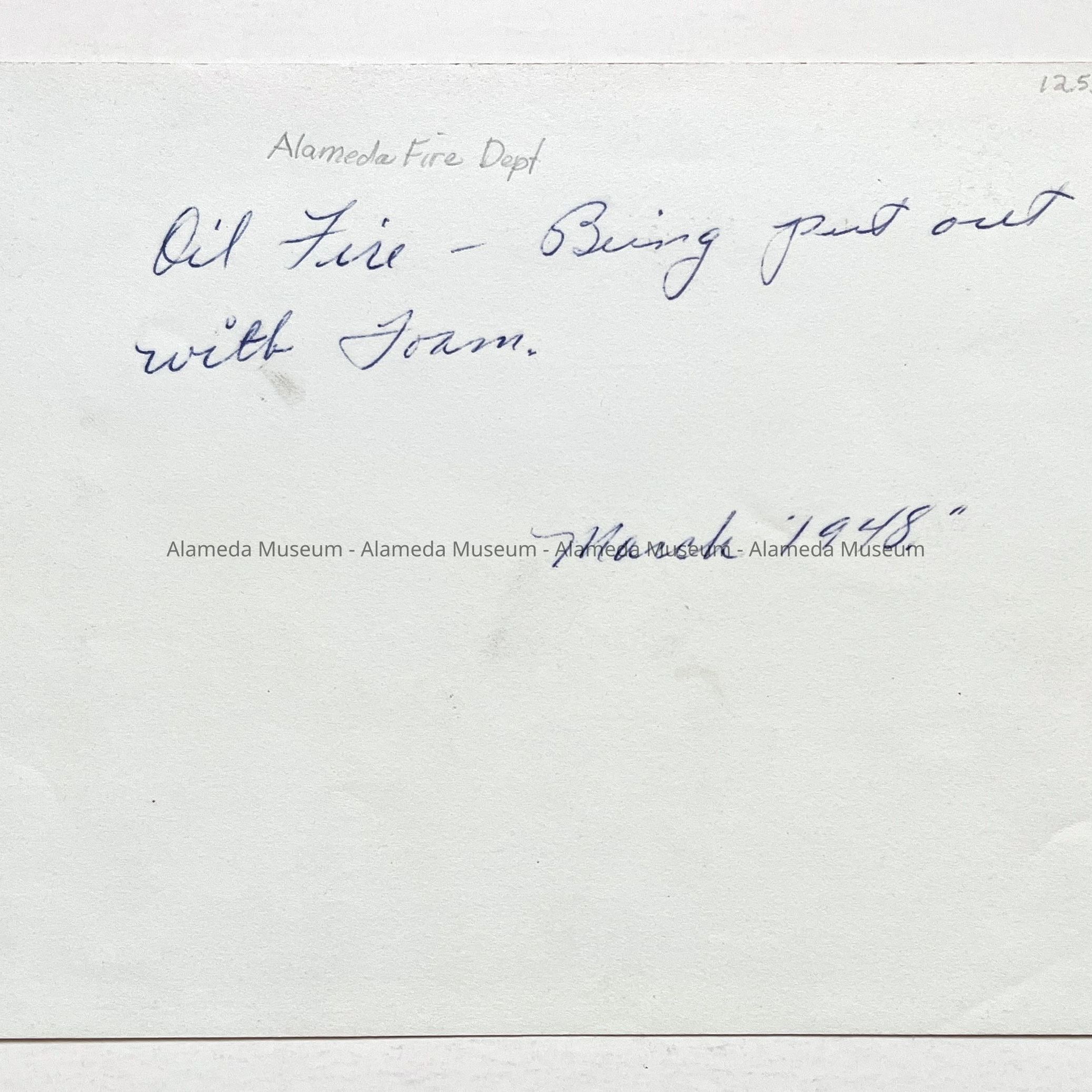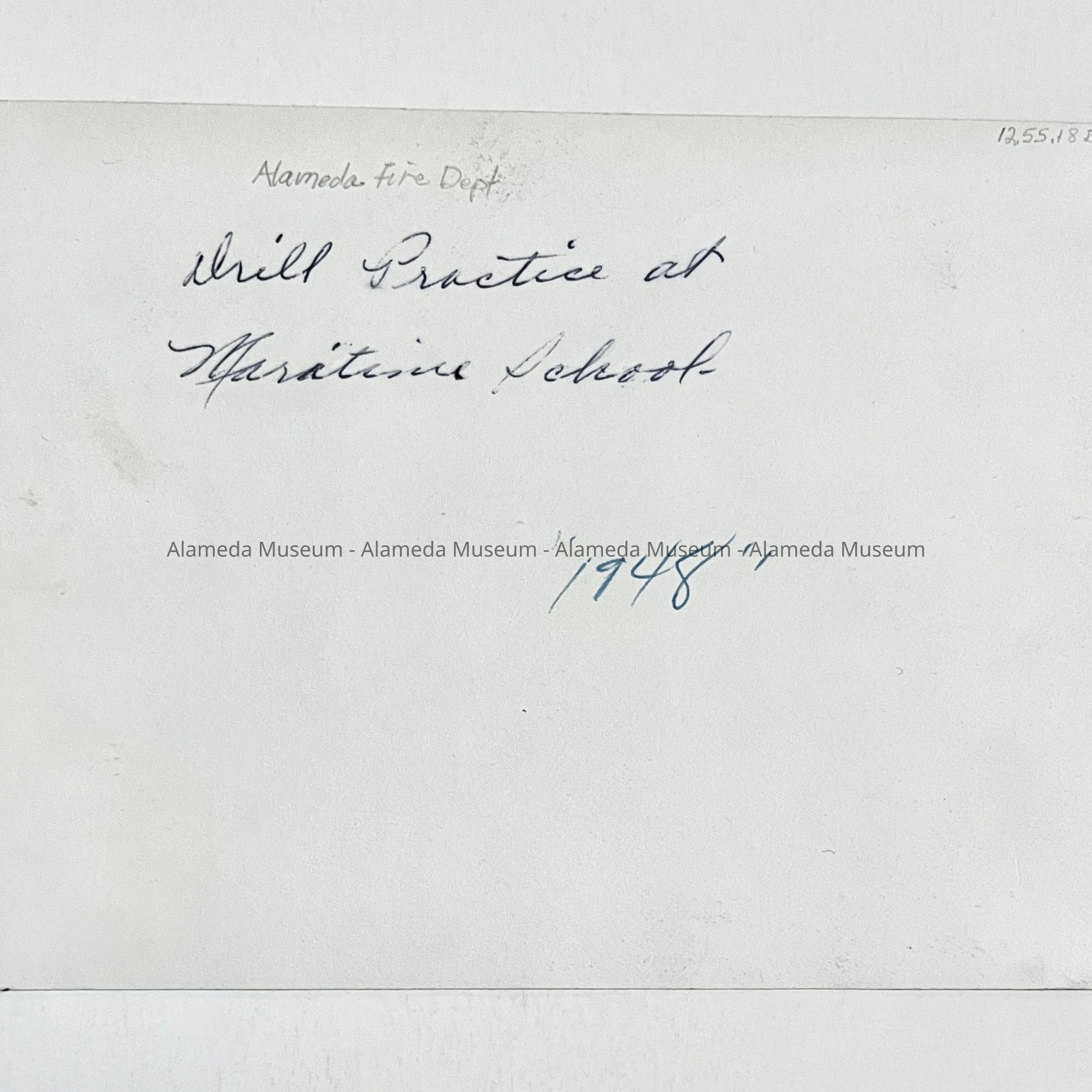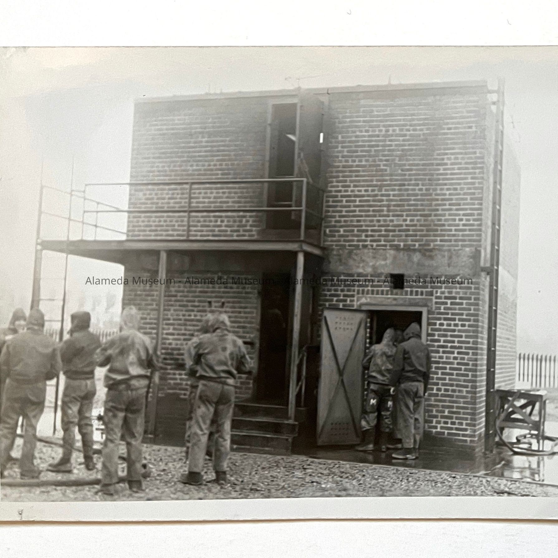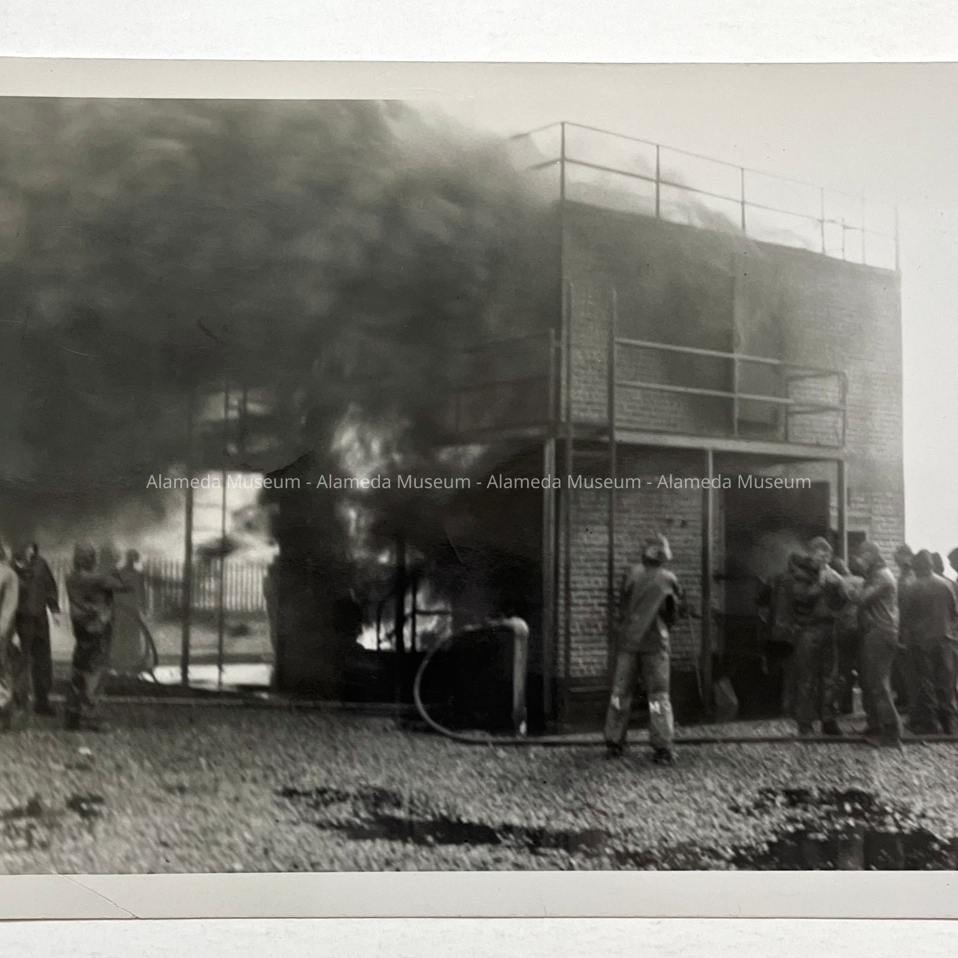 History of Object: Fire drill practice at maritime school, Central Ave. and Webster St. in 1948. Former location of Neptune Beach.