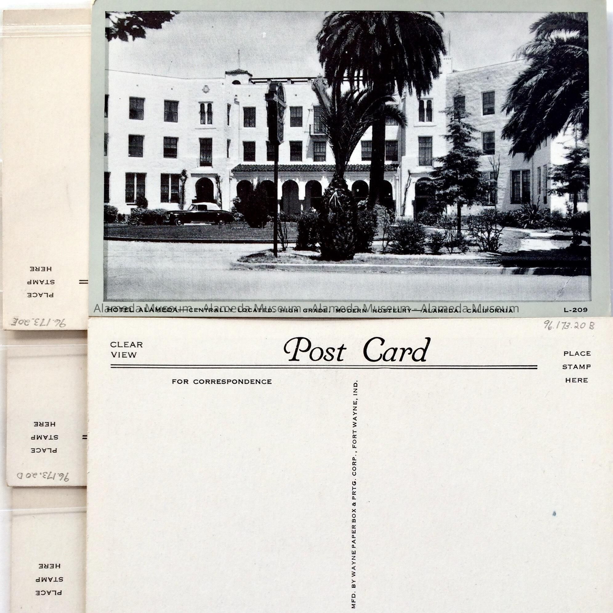 A POSTCARD DEPICTING "HOTEL ALAMEDA," TAKEN FROM CENTRAL AVENUE, ALAMEDA, CALIFORNIA.