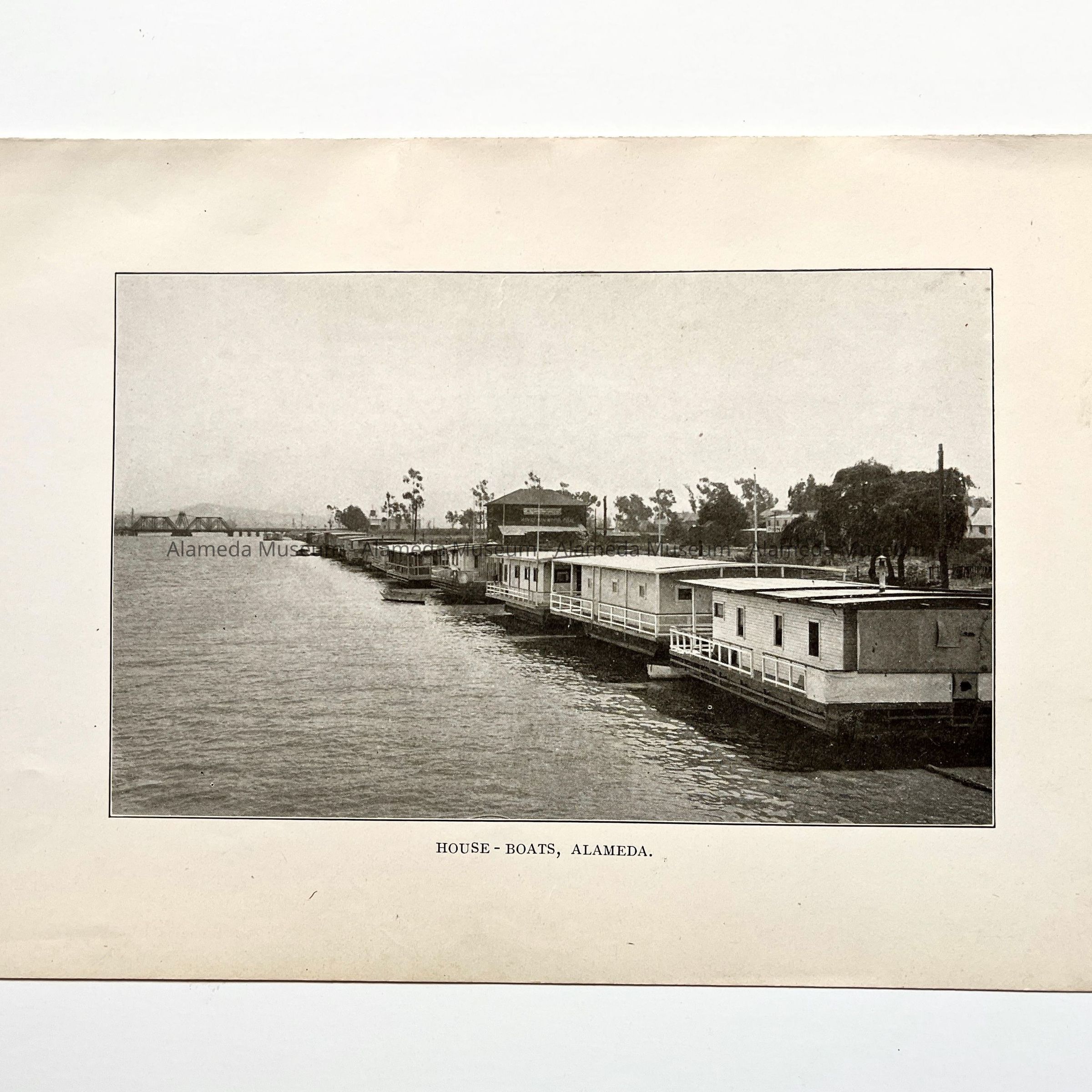 History of Object: A photographic illustration of houseboats docked along the south side of the estuary, looking eastward. (It is after 1902 because of the presence of a bridge in the background).