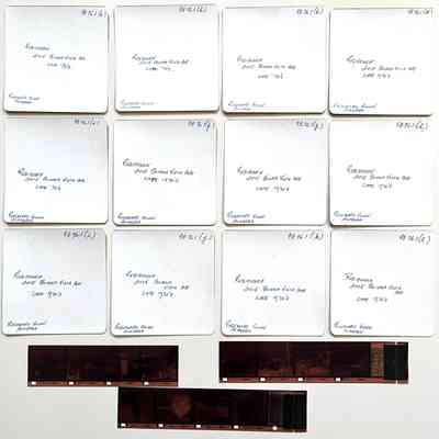 Most images have minor descriptive markings in blue ball point pen ink upon their emulsion.
