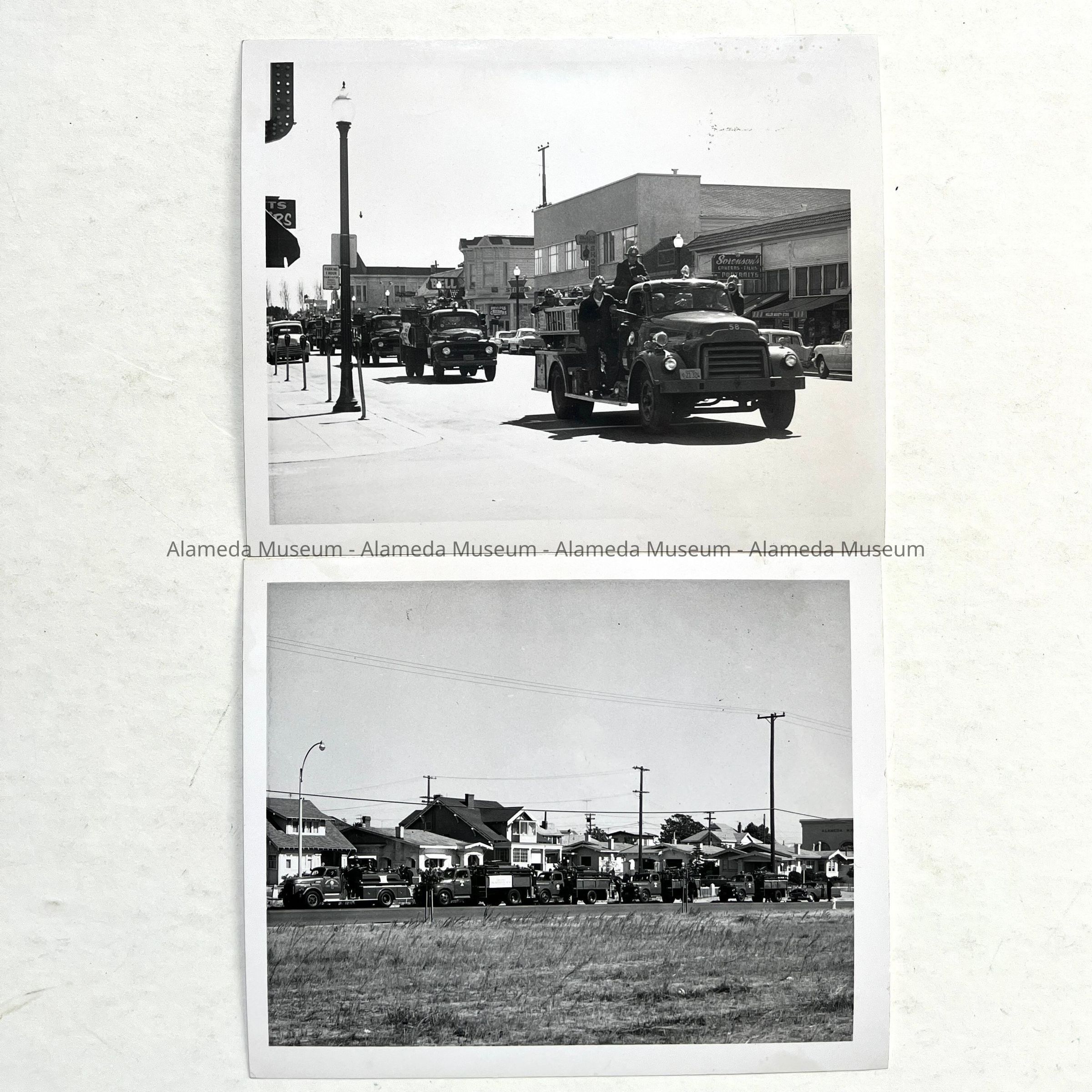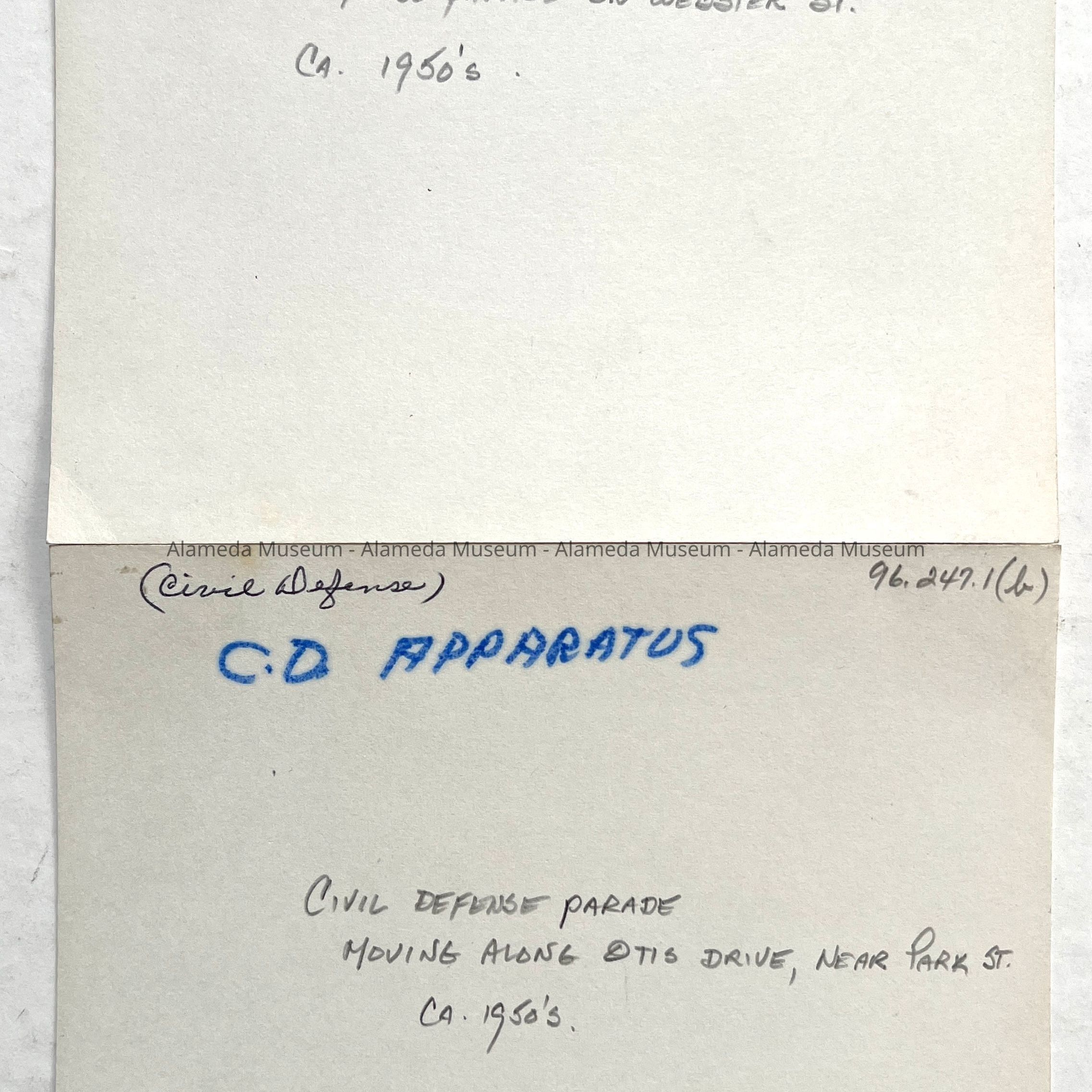 History of Object: Civil Defense parade scenes: (a) going East up Webster Street after crossing Santa Clara Avenue intersection; (b) moving West along Otis Drive after turning off Park Street.