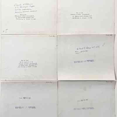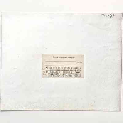 Description: Set of glossy black/white photos, unmounted. Photographer unknown. Images #a, b, c, and e have a white typed description label glued to their bottom edge.
