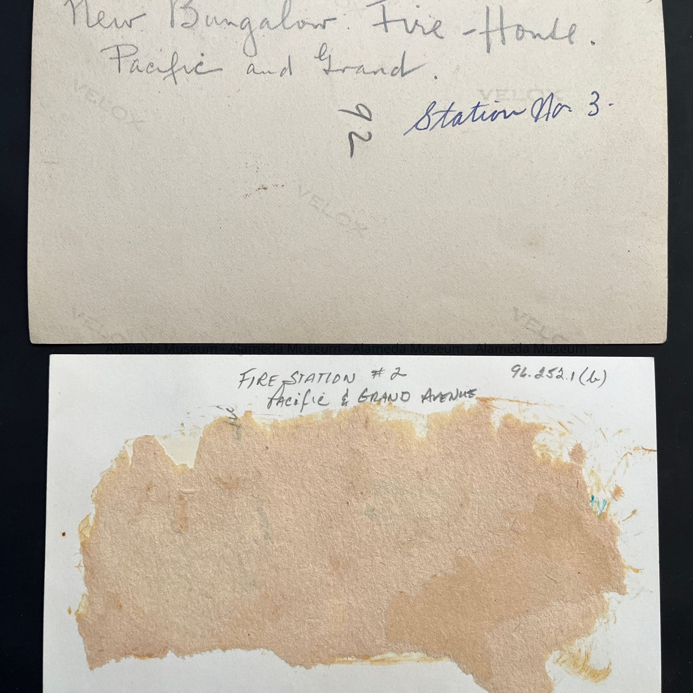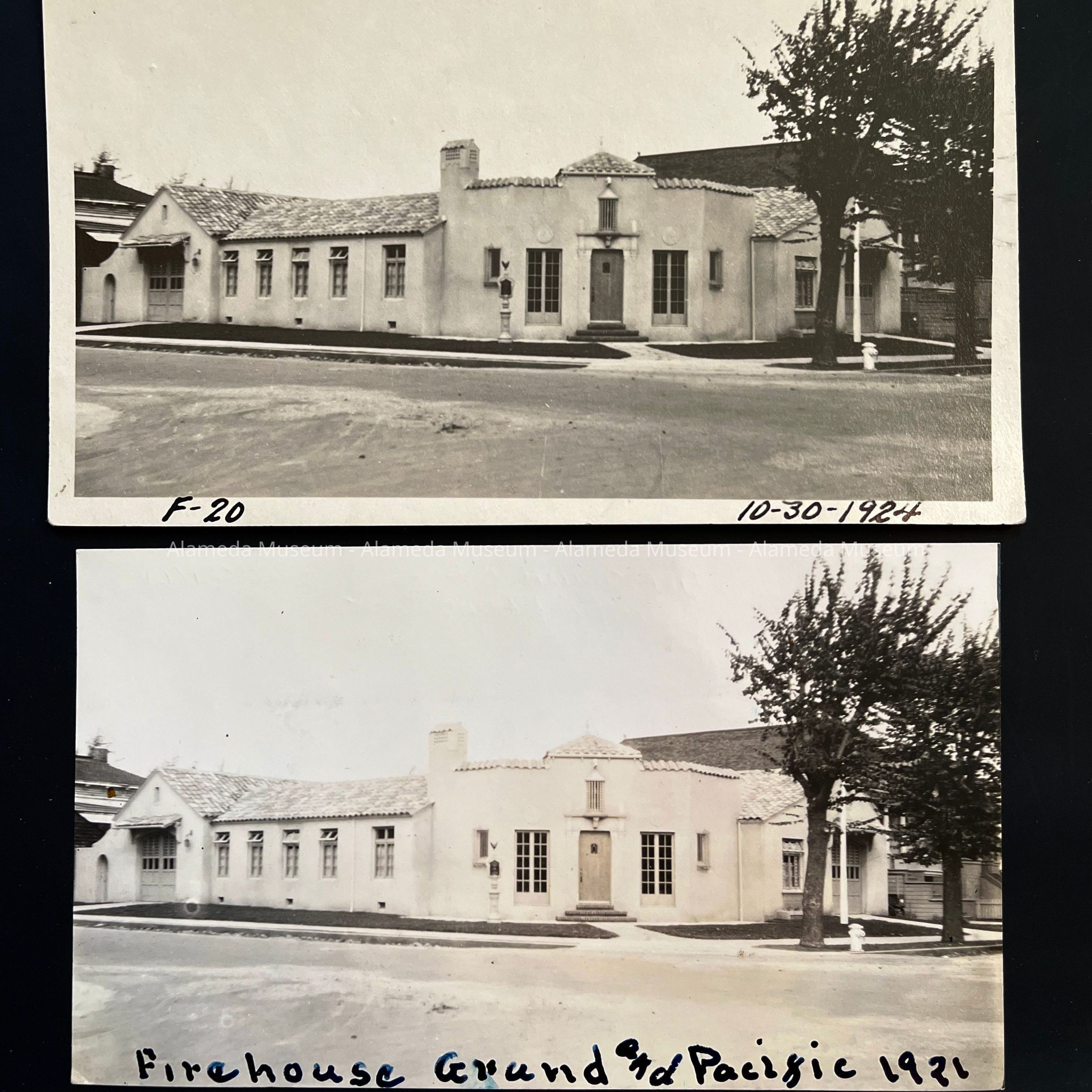 History of Object: Identical views of the exterior of Fire Station #3, located at the corner of Grand and Pacific Avenues.