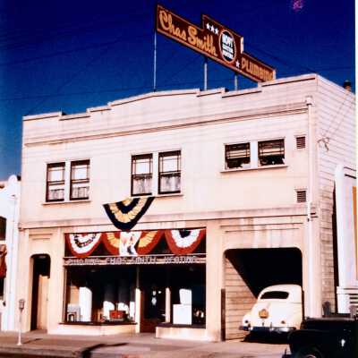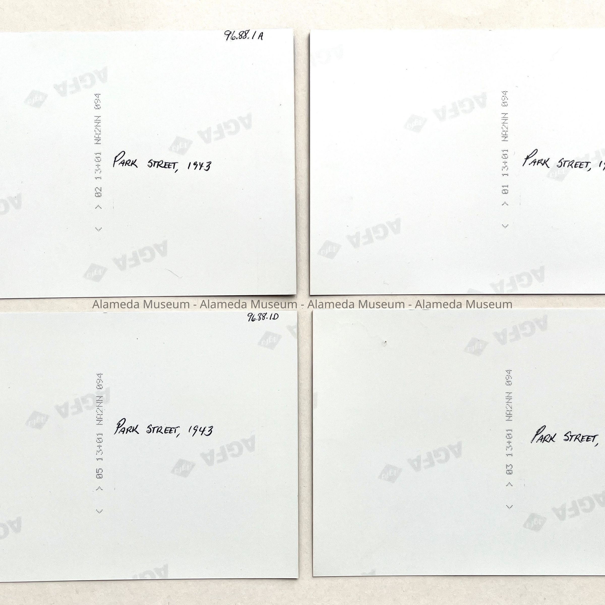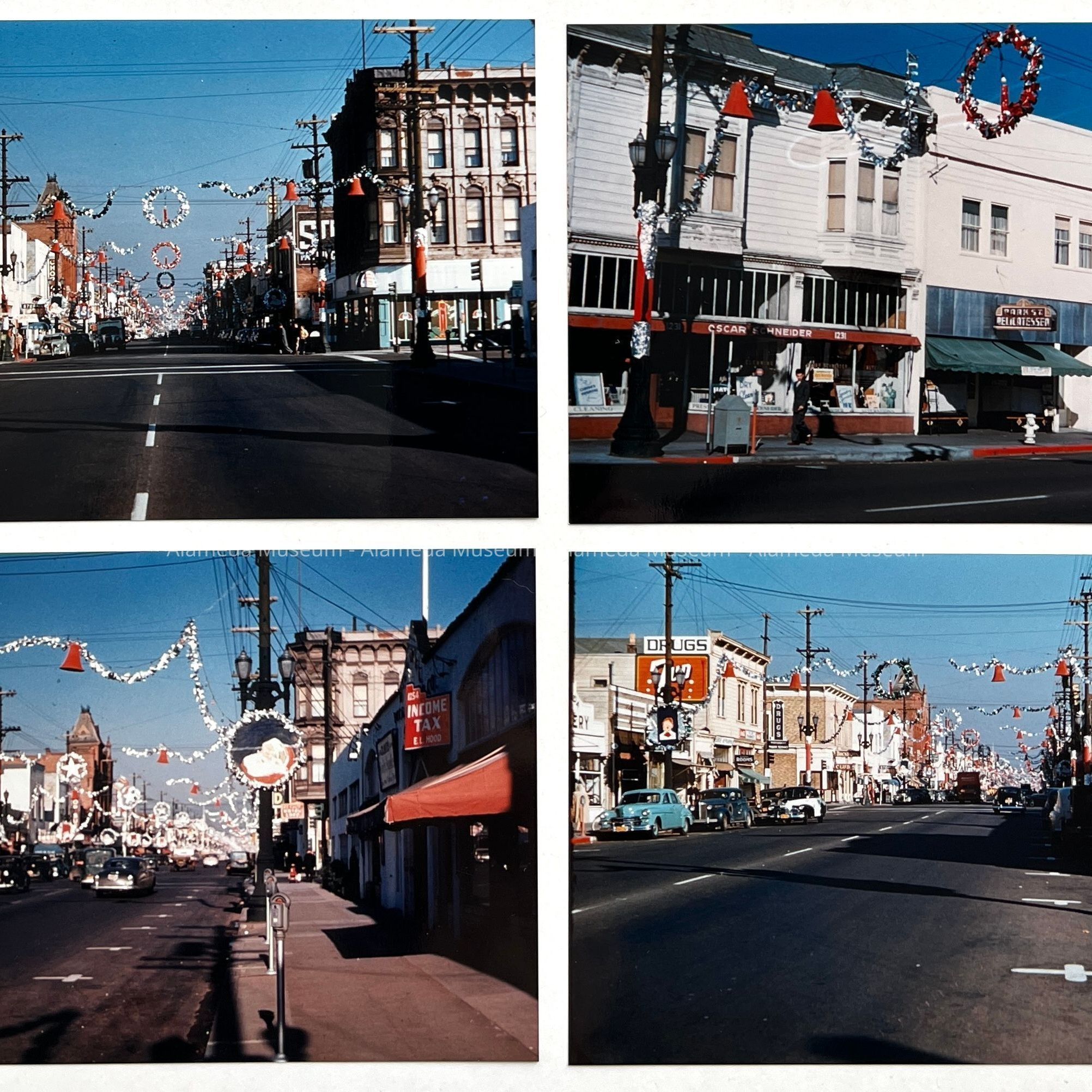 SERIES OF PHOTOGRAPHS MADE DURING CHRISTMAS, 1943. PHOTO "C" DEPICTS 1250 PARK STREET, ALAMEDA. THE PLUMBING SHOP AND UPSTAIRS FLAT OF CHARLES SMITH, FATHER OF LOIS HOFFMAN, DONOR. LOIS' GRANDFATHER WAS OWNER OF "CHARLES SMITH PLUMBING AND HEATING," UNTIL 1929 WHEN HE PASSED AWAY. LOIS' FATHER, CHARLES SMITH, JR,, PASSED AWAY IN 1963.