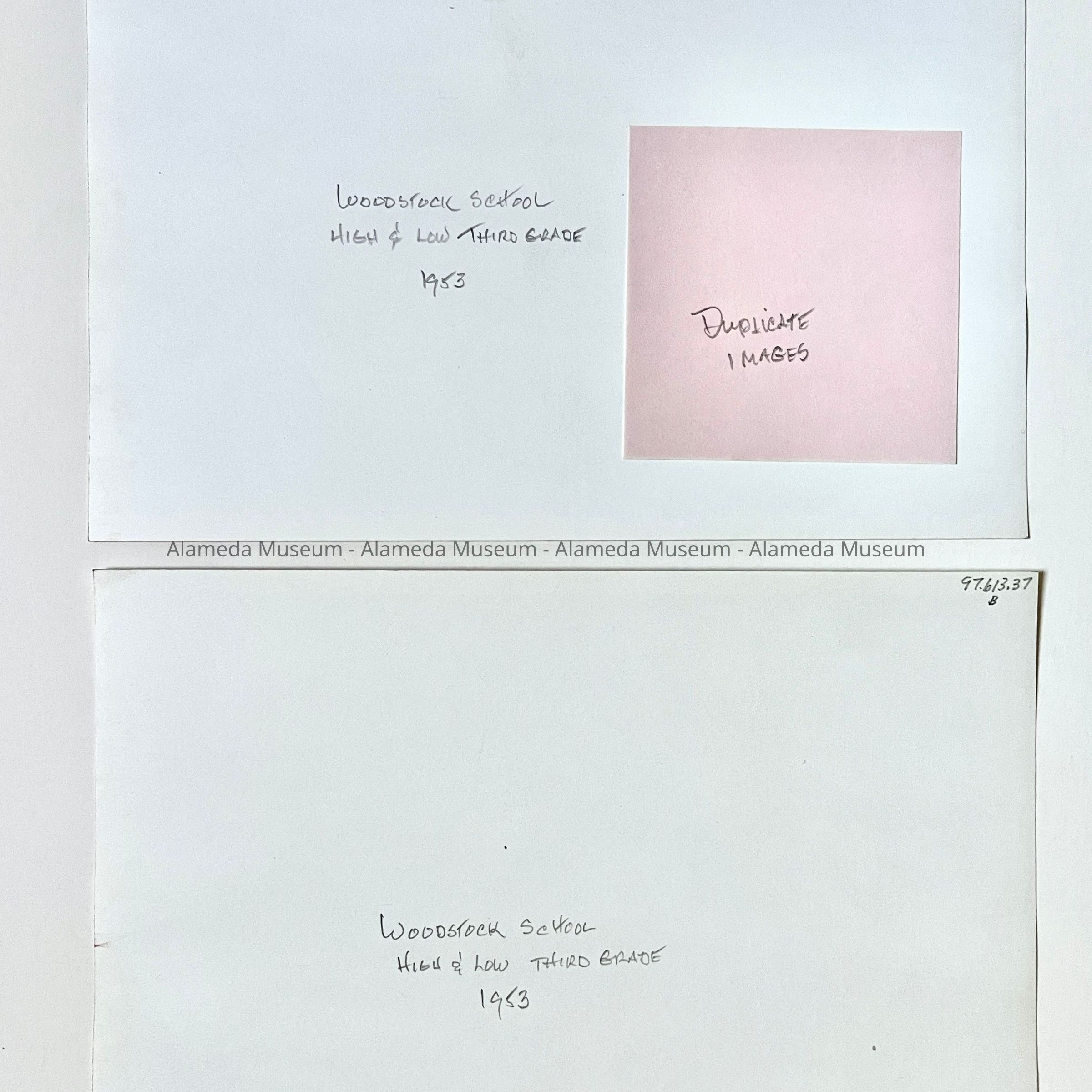 PHOTOGRAPH OF LOW AND HIGH THIRD-GRADE CLASSES, WOODSTOCK SCHOOL, ALAMEDA, 1953.