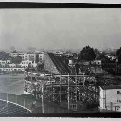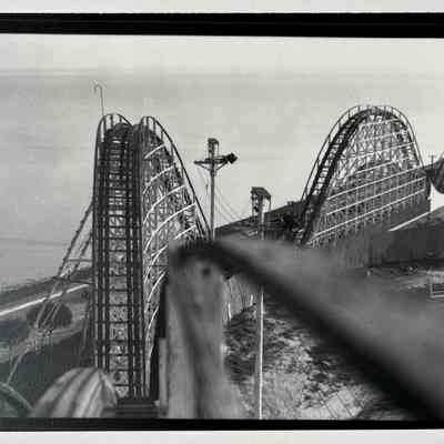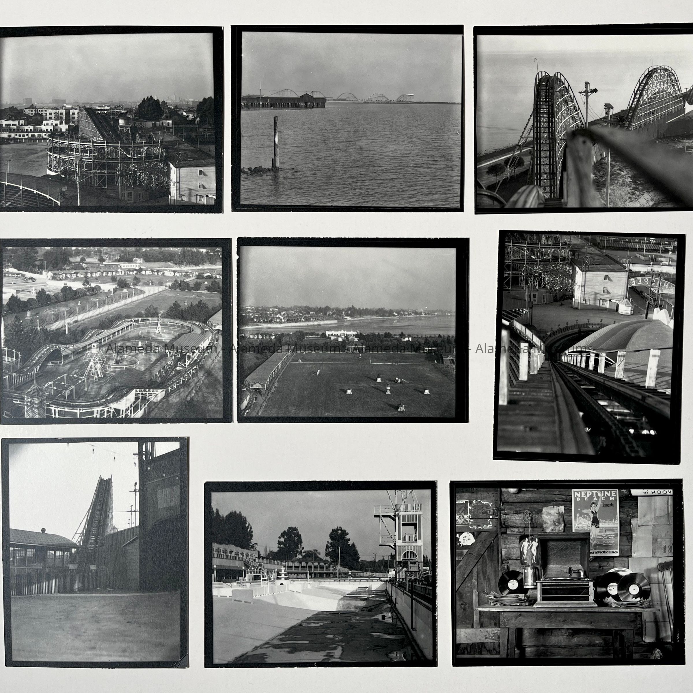 History of Object: Neptune Beach views: #a through #g are photos of, or from, the roller coaster; #h - the swimming pool, drained; #i - memorabilia grouping featuring a Neptune Beach poster (location unknown); #j - uniformed Boy Scout official taking a motion picture.