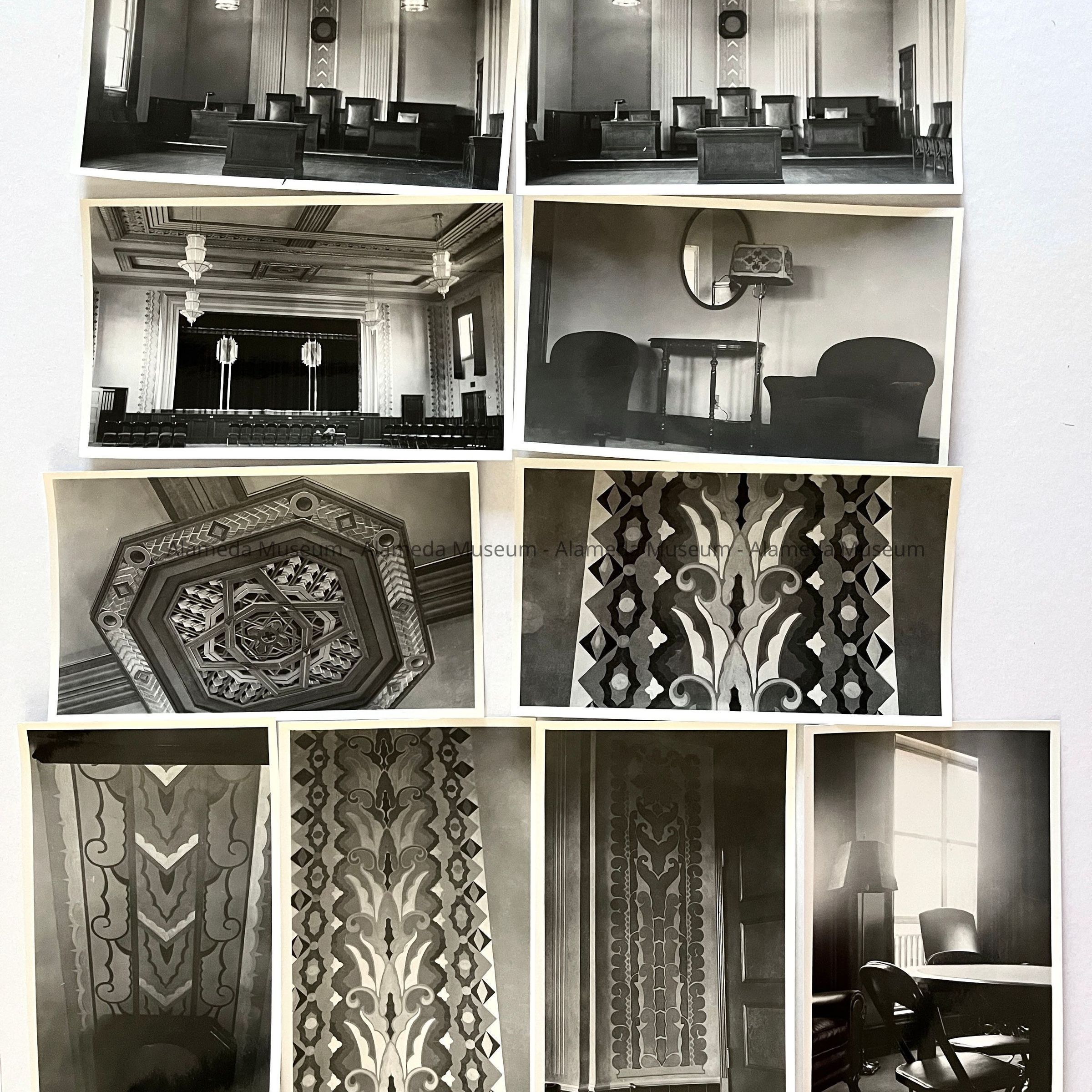 PHOTOGRAPHS OF THE INTERIOR OF WHAT APPEARS TO BE A MASONIC BUILDING, WITH DECORATIVE PLASTER WORK, PANELS, ETC., IN THE ART DECO STYLE, DESIGNED BY HENRY H MEYERS, COUNTY ARCHITECT.
