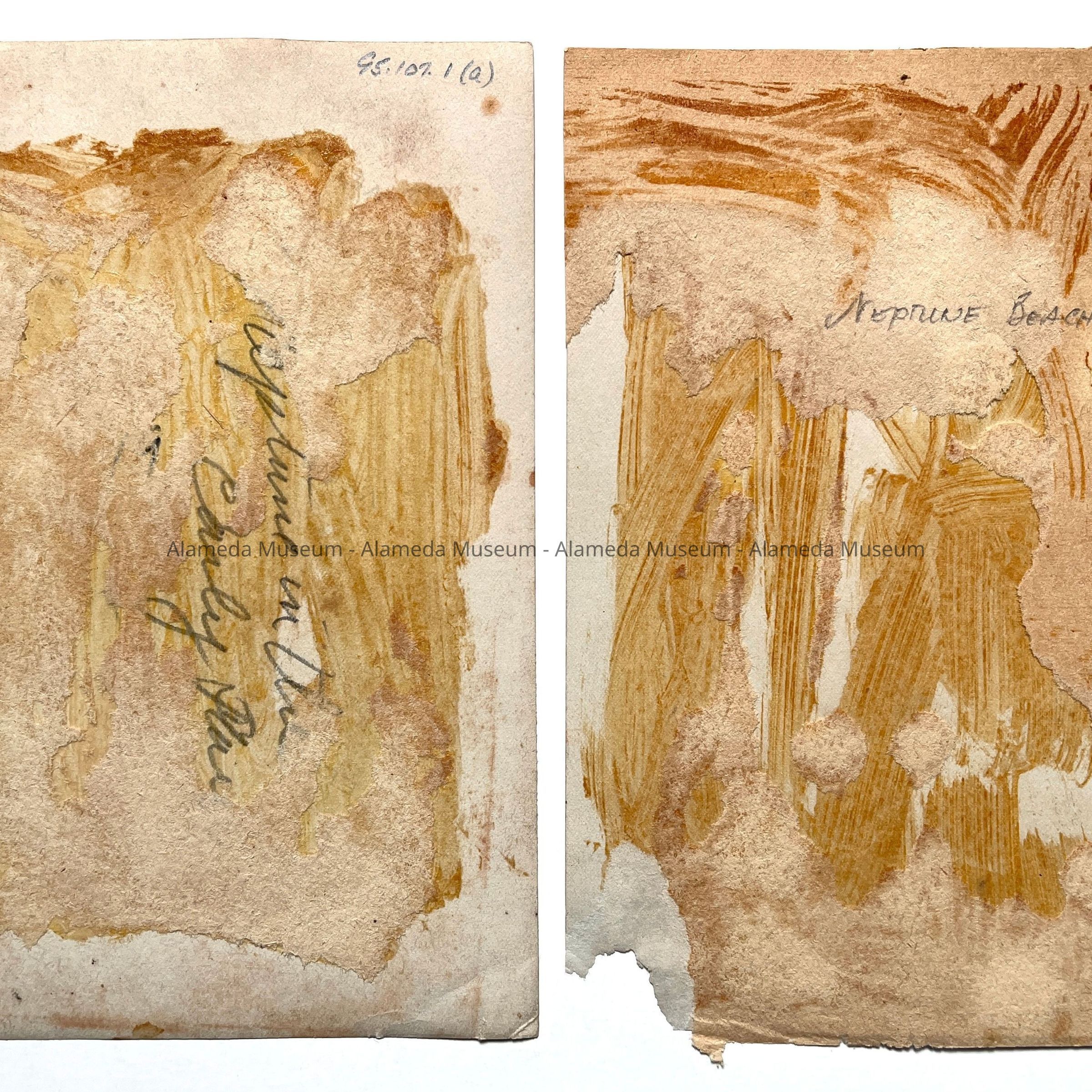 Description: Amateur photographs consisting of two prints from the same negative: (a) black/white print, and (b) sepia-toned print with the lower right corner missing and "Neptune Beach" typewritten across top right of the image. Photographer unknown. Unmounted.
