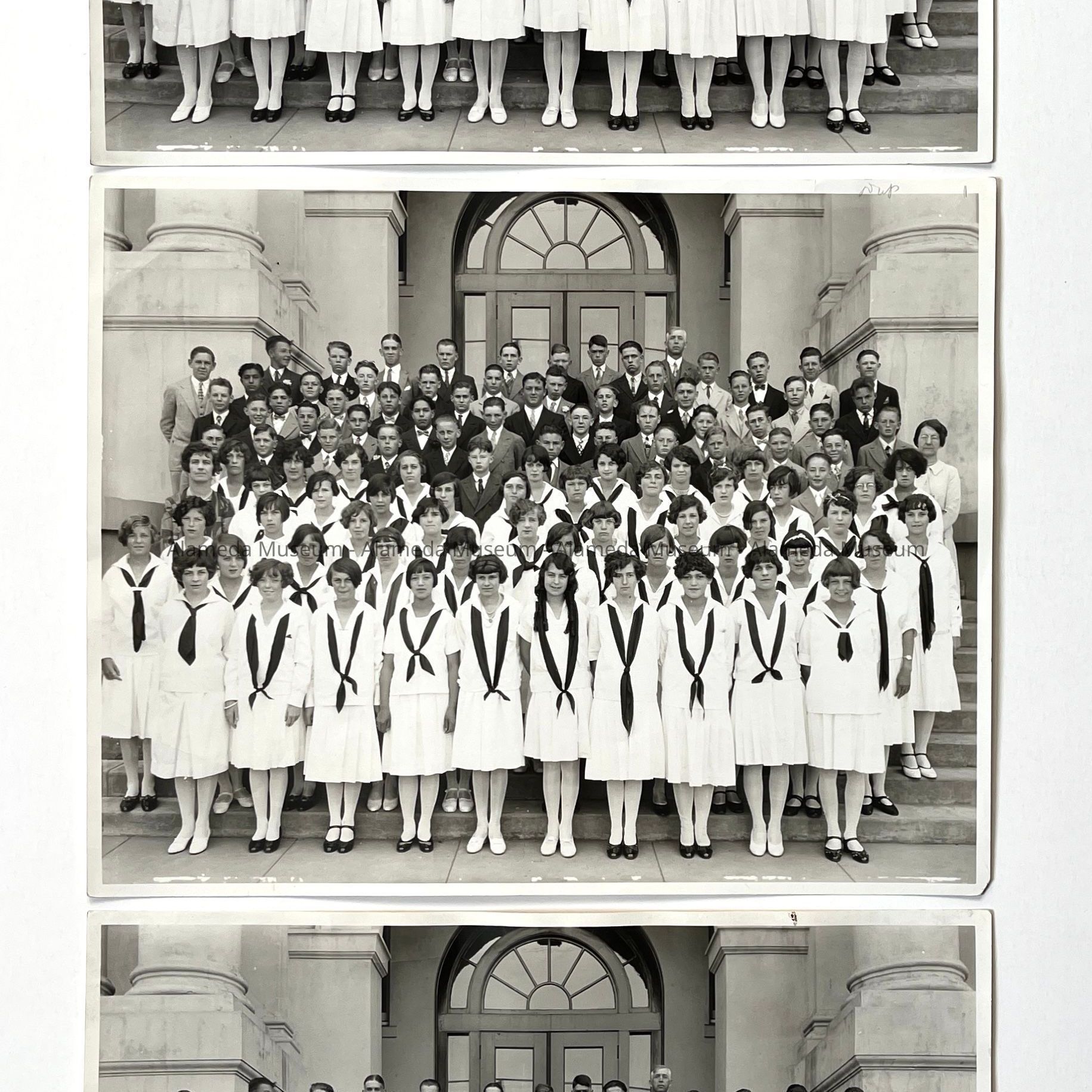 History of Object: Three identical photos of a Washington School class posed upon the front entrance steps. Student names & class identification are not given.
