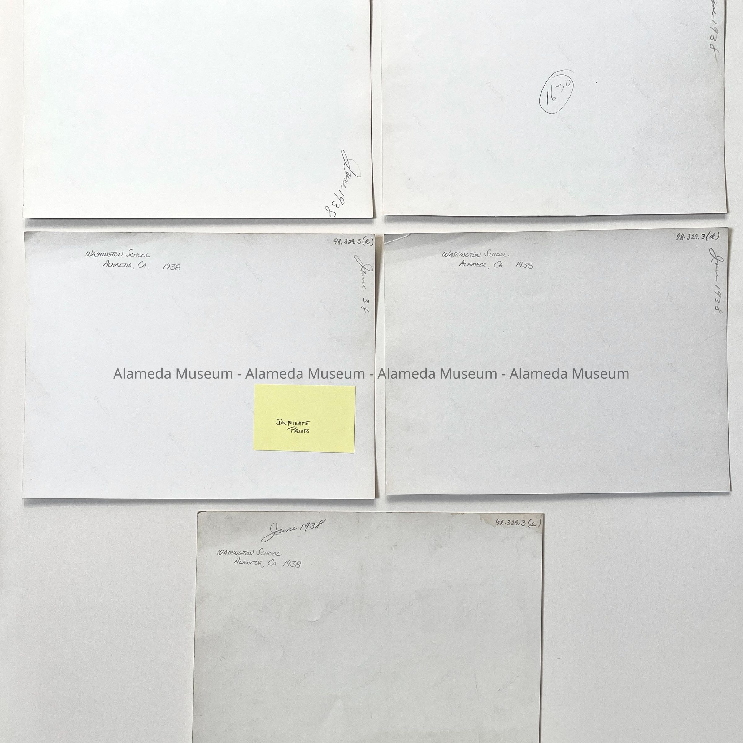 History of Object: Five identical images of an unidentified Washington School student class picture, posed upon the school's front entrance steps. No students are identified.