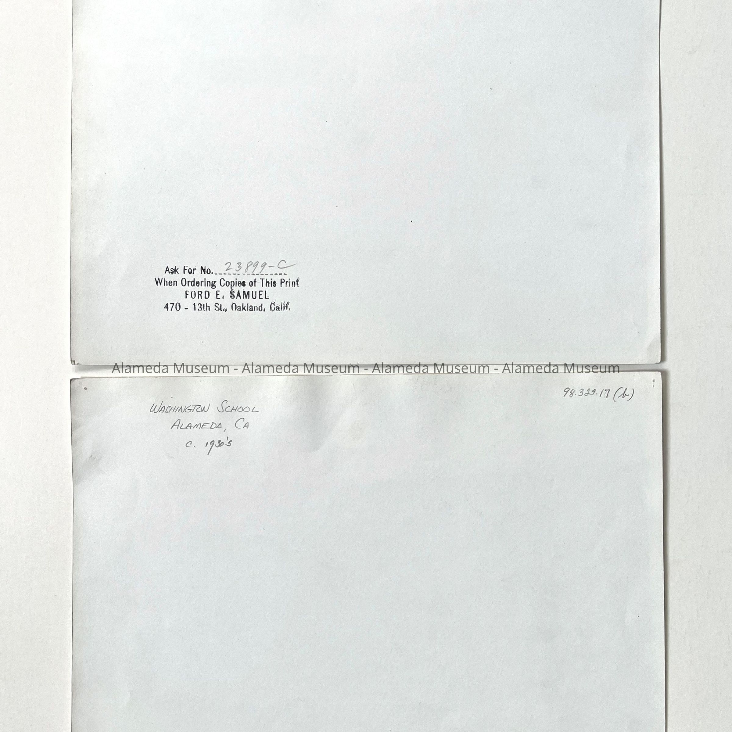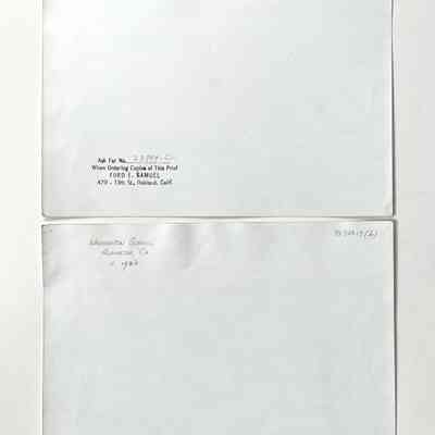 Description: Glossy black/white photos, unmounted. Photographer: Ford E. Samuel, 470 - 13th Ave., Oakland. Minor creasing and thumbtack holes are found along the margins.