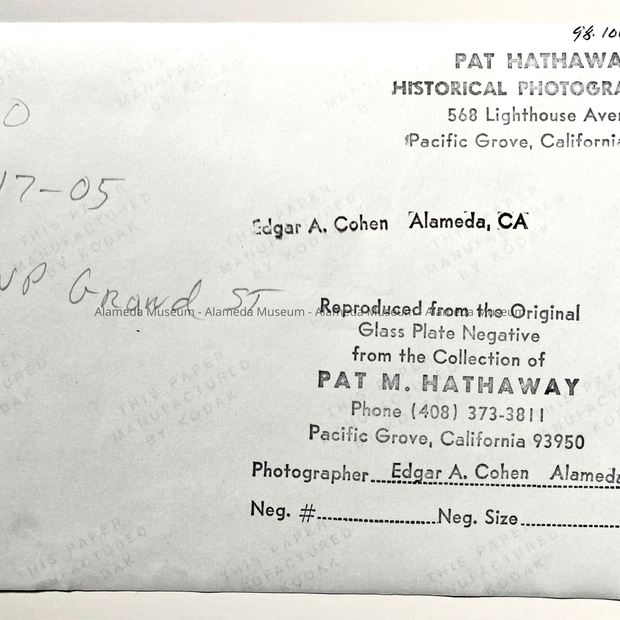 Photos of Alameda, by Edgar A. Cohen, 1899-1908Entry/Object ID