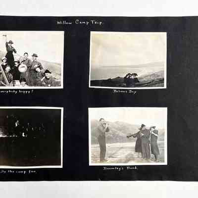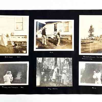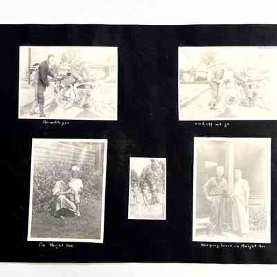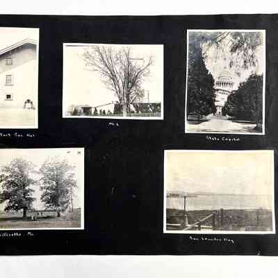 BLACK-COLORED PHOTO ALBUM PAGES, WITH ATTACHED BLACK-AND-WHITE SNAPSHOT PHOTOGRAPHS.