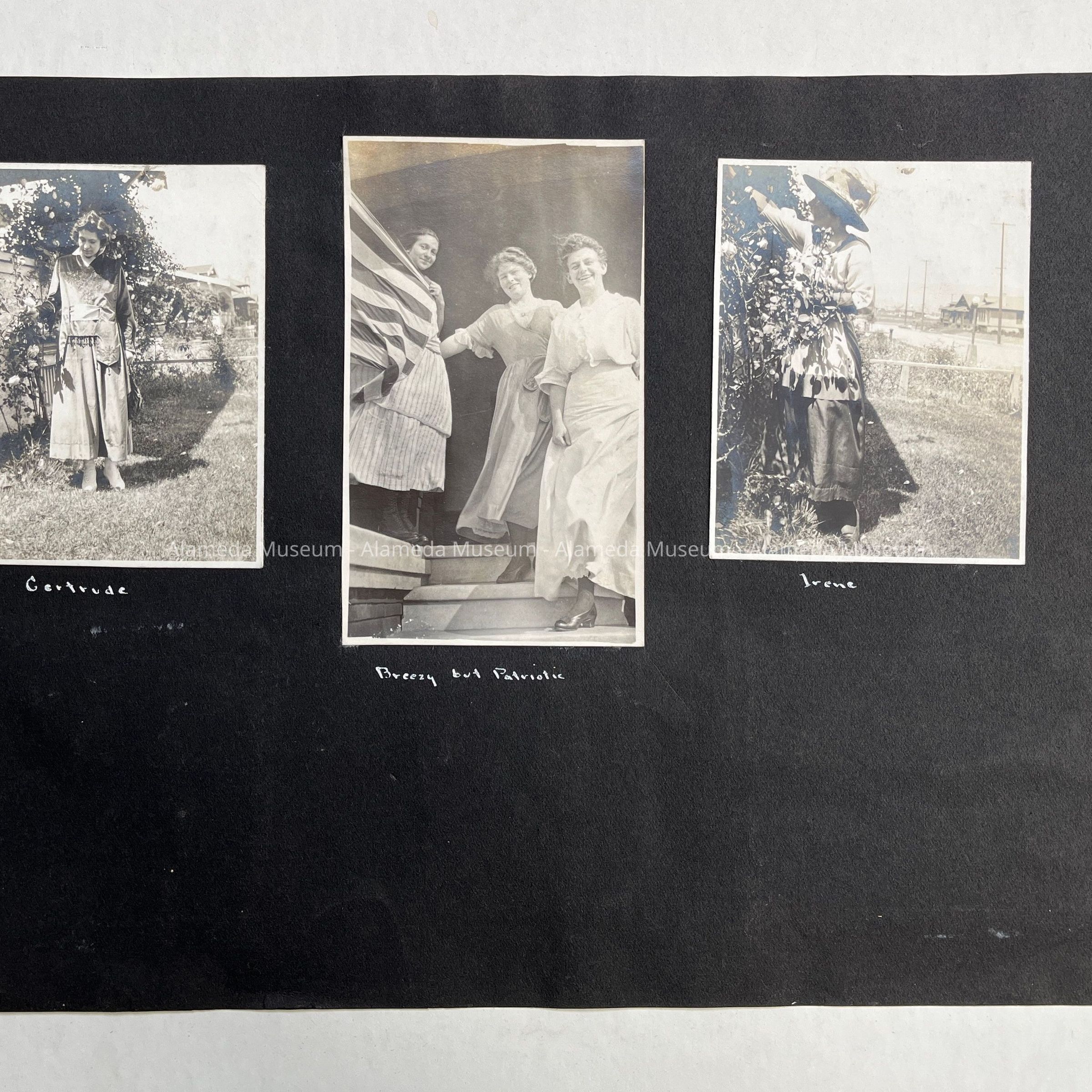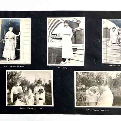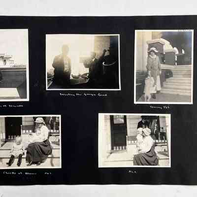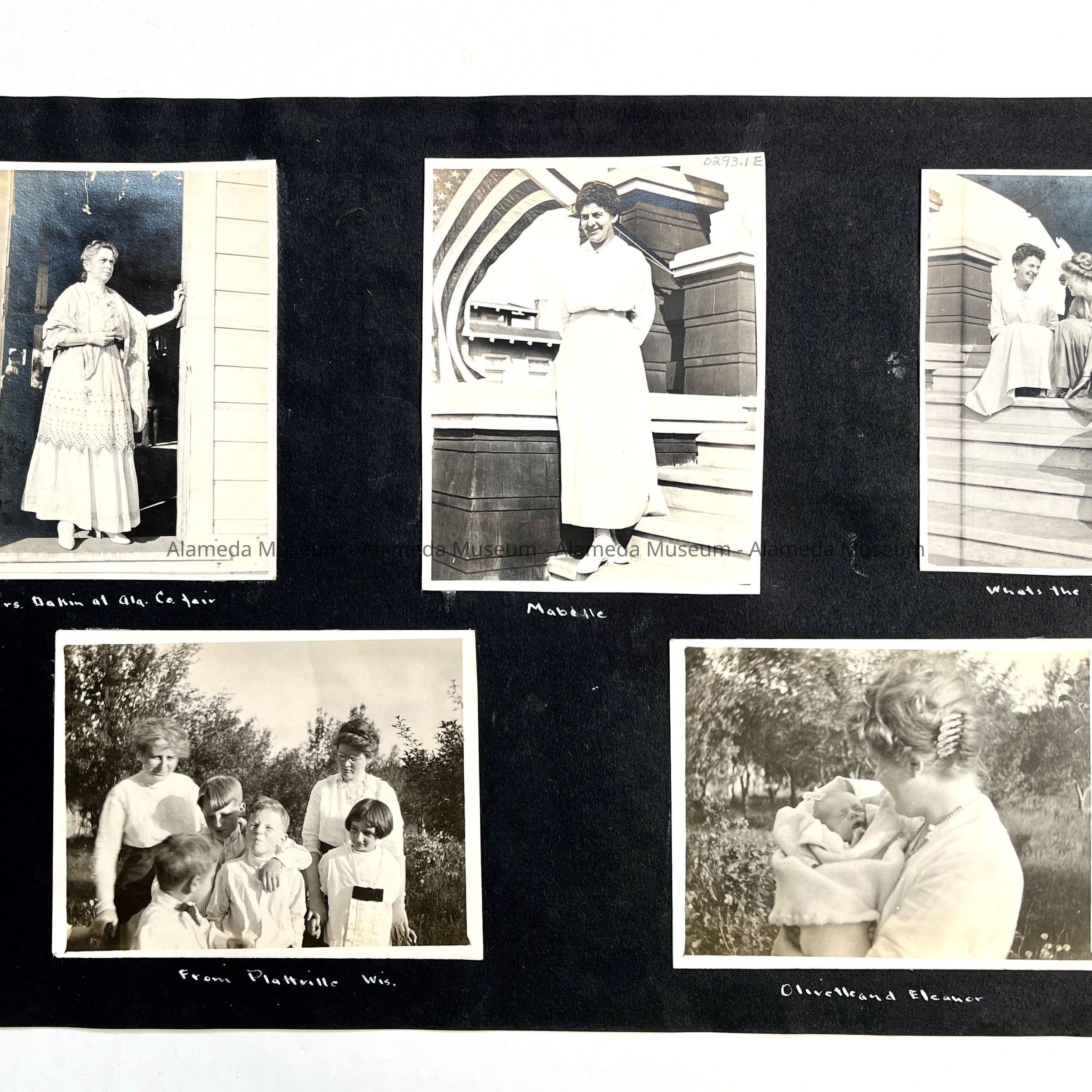 PHOTOGRAPHS OF AN UNIDENTIFIED FAMILY WHO MAY HAVE RESIDED AT 1450 FERNSIDE BOULEVARD, ALAMEDA. THE PORCH CAN BE SEEN IN THE BACKGROUND AND IS DEPICTED IN SOME OF THE PHOTOGRAPHS. A VIEW OF SAN LEANDRO BAY CAN ALSO BE SEEN.